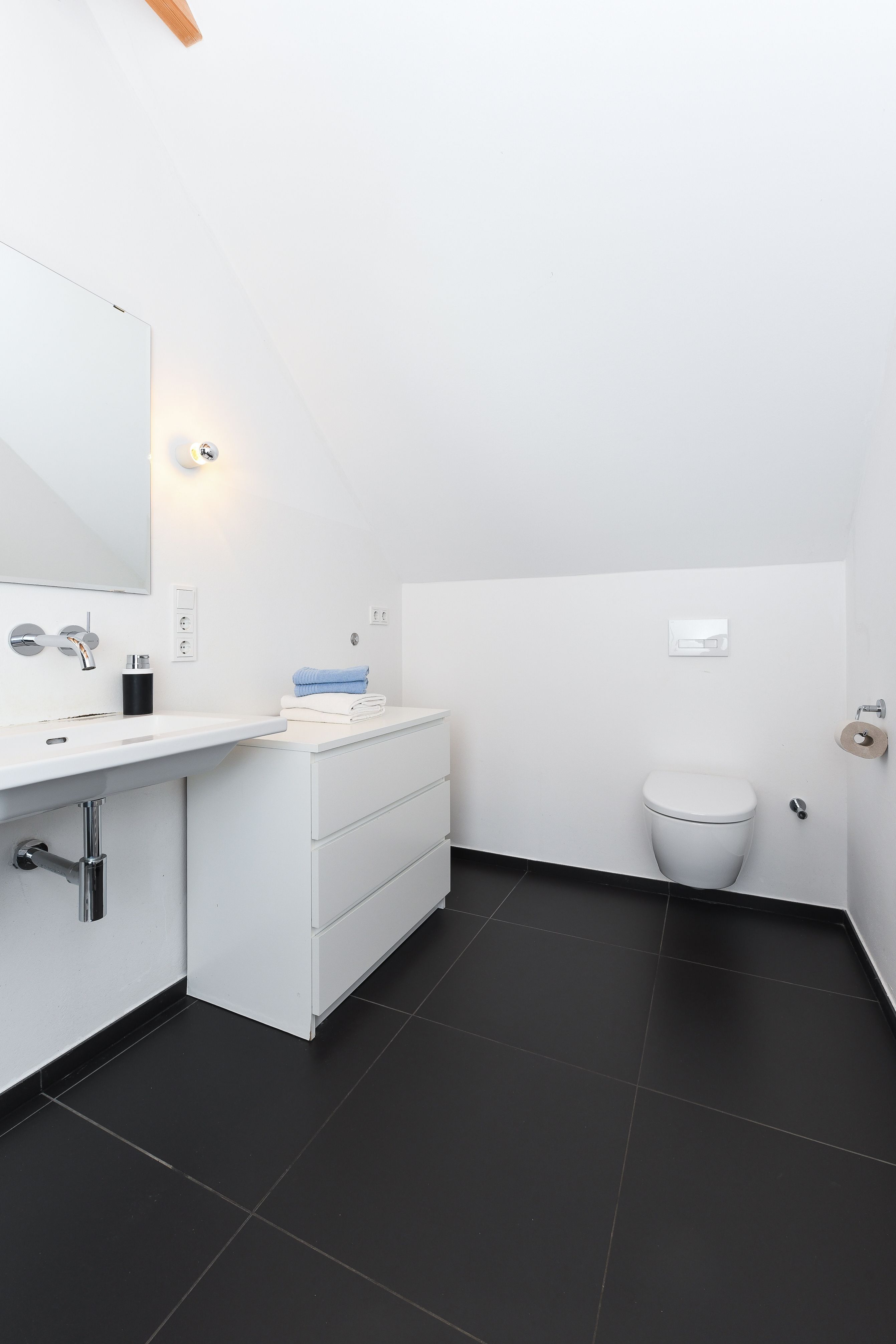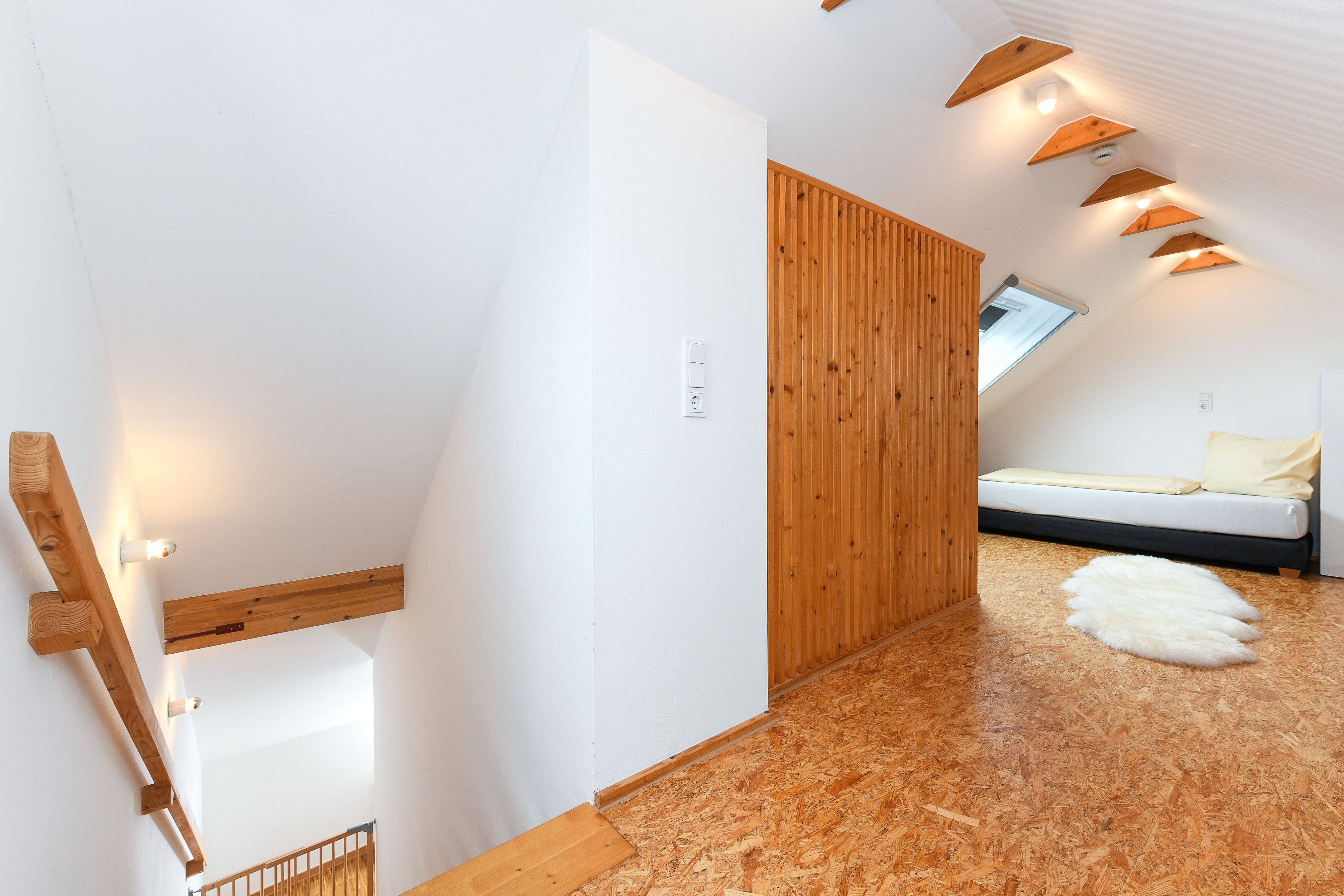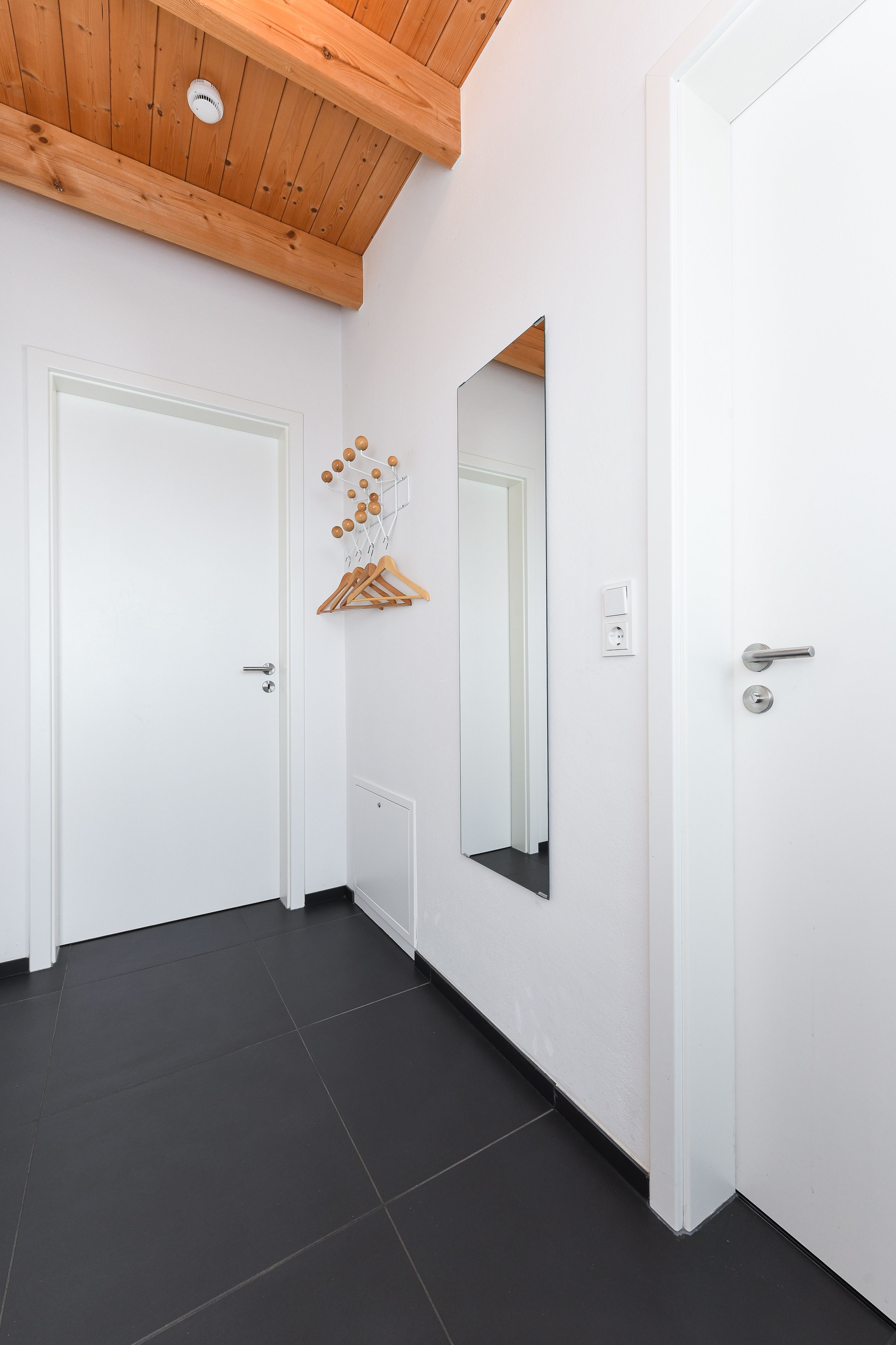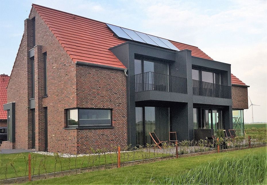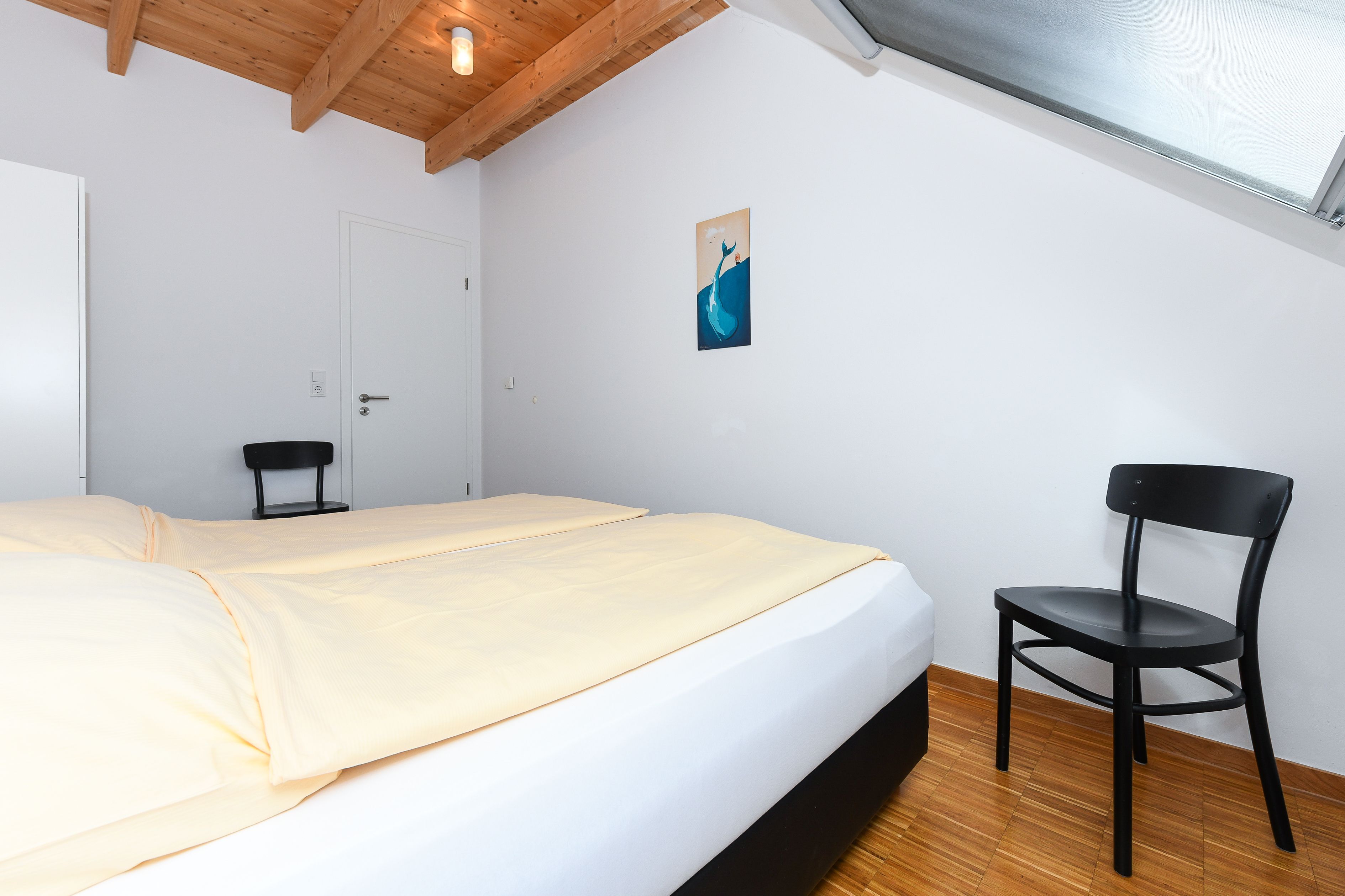 Das Appartement im Obergeschoss (60 m²) der SIELZEIT mit separatem Zugang im Erdgeschoss und einem groß- zügigen Balkon besitzt eine geräumige Wohnküche, zwei separate Schlafzimmer und eine Schlaf- / Spielempore. Es bietet vier bis max. sechs Personen Platz. Bodentiefe Panoramafenster eröffnen einen unverstellten Blick in die weite ostfriesische Landschaft und auf die das Grund- stück umgebenden Gewässer. Die Wohnung verfügt über ein geräumiges Bad mit großzügiger Walk-In-Dusche.