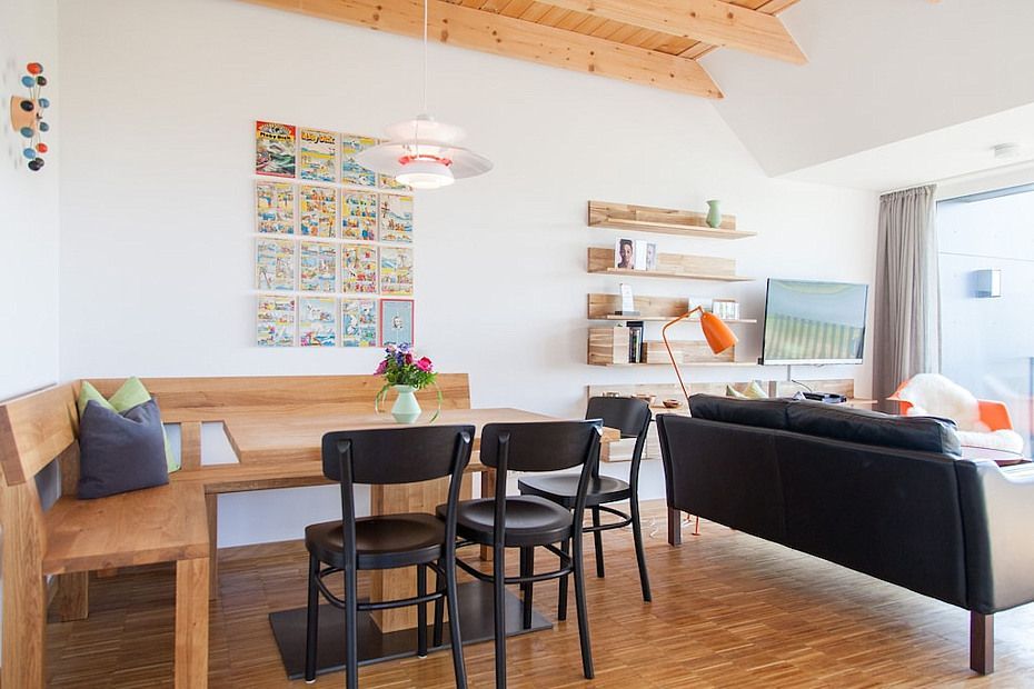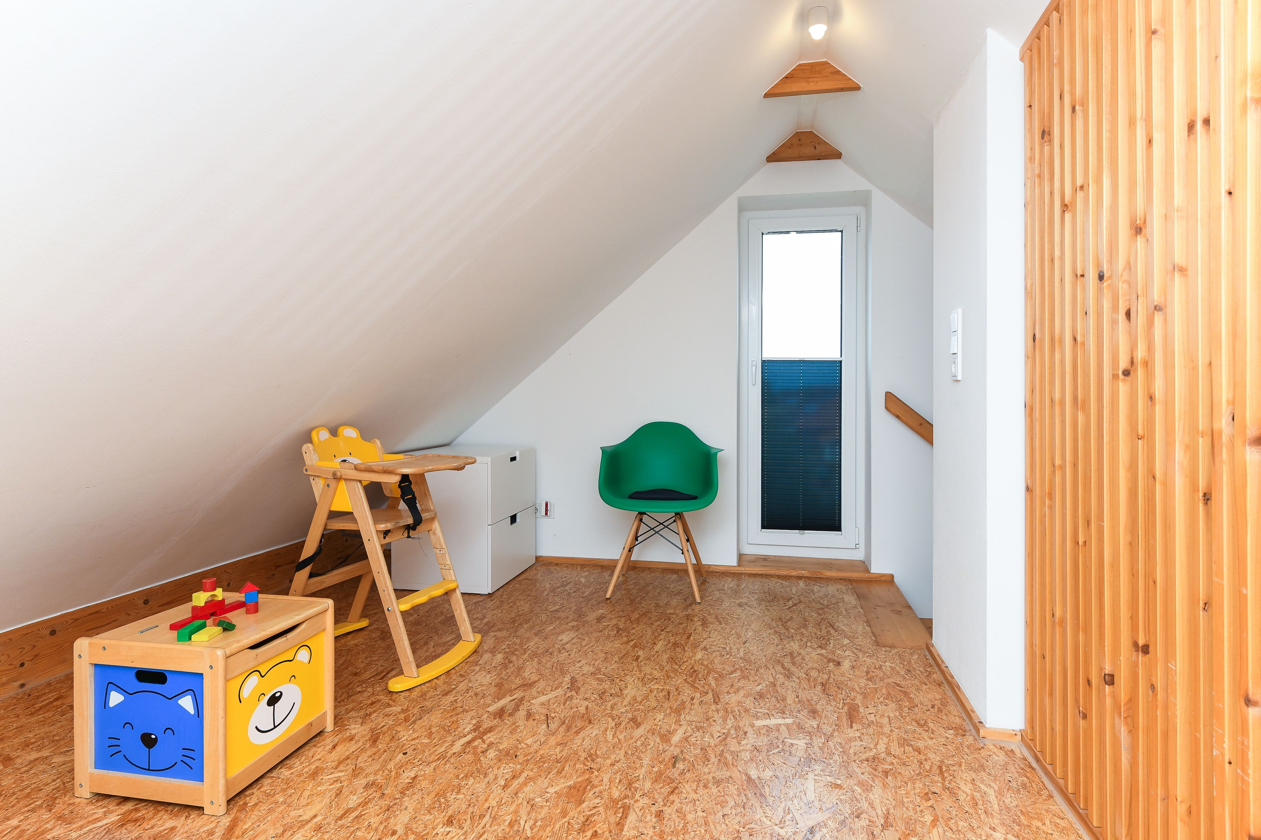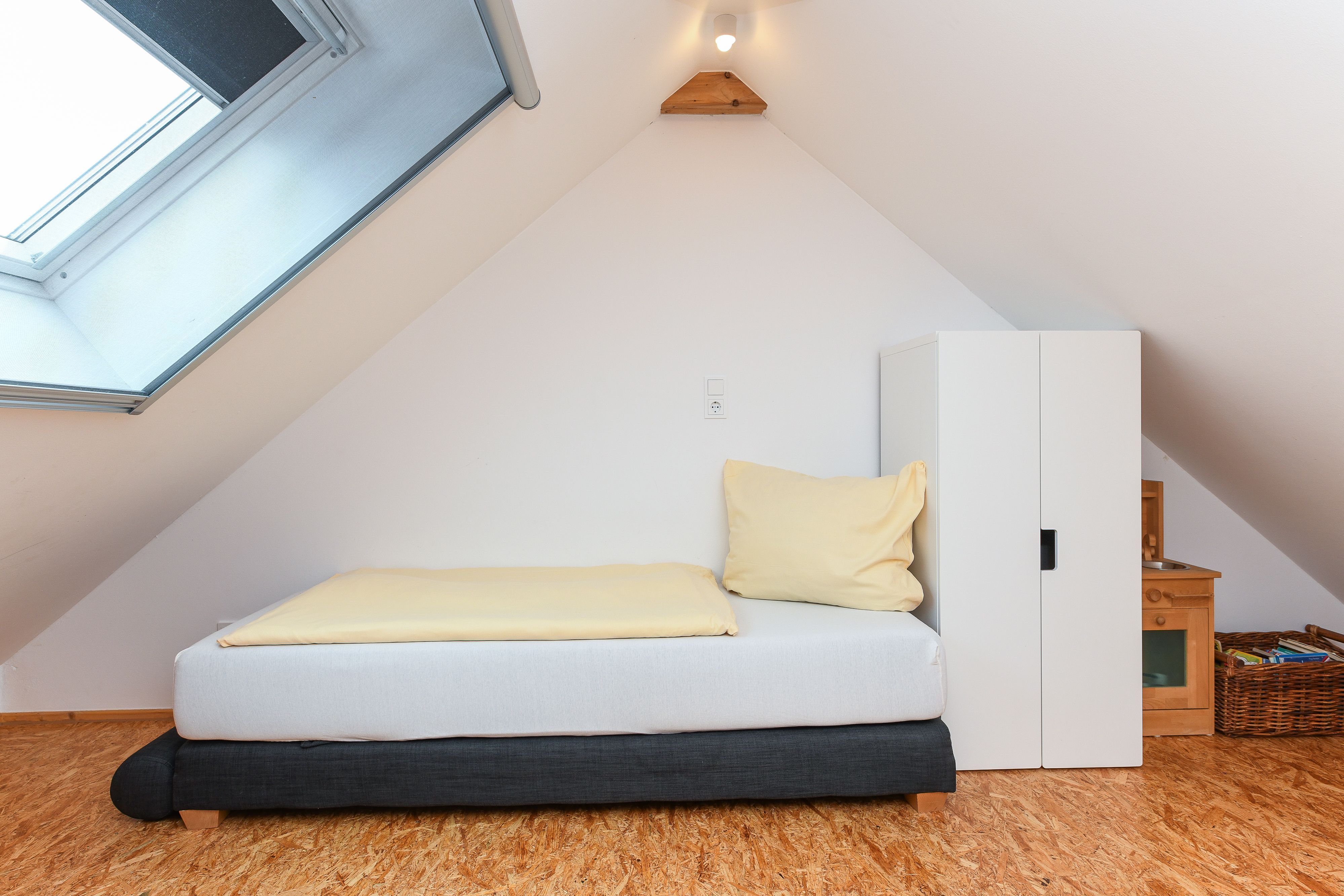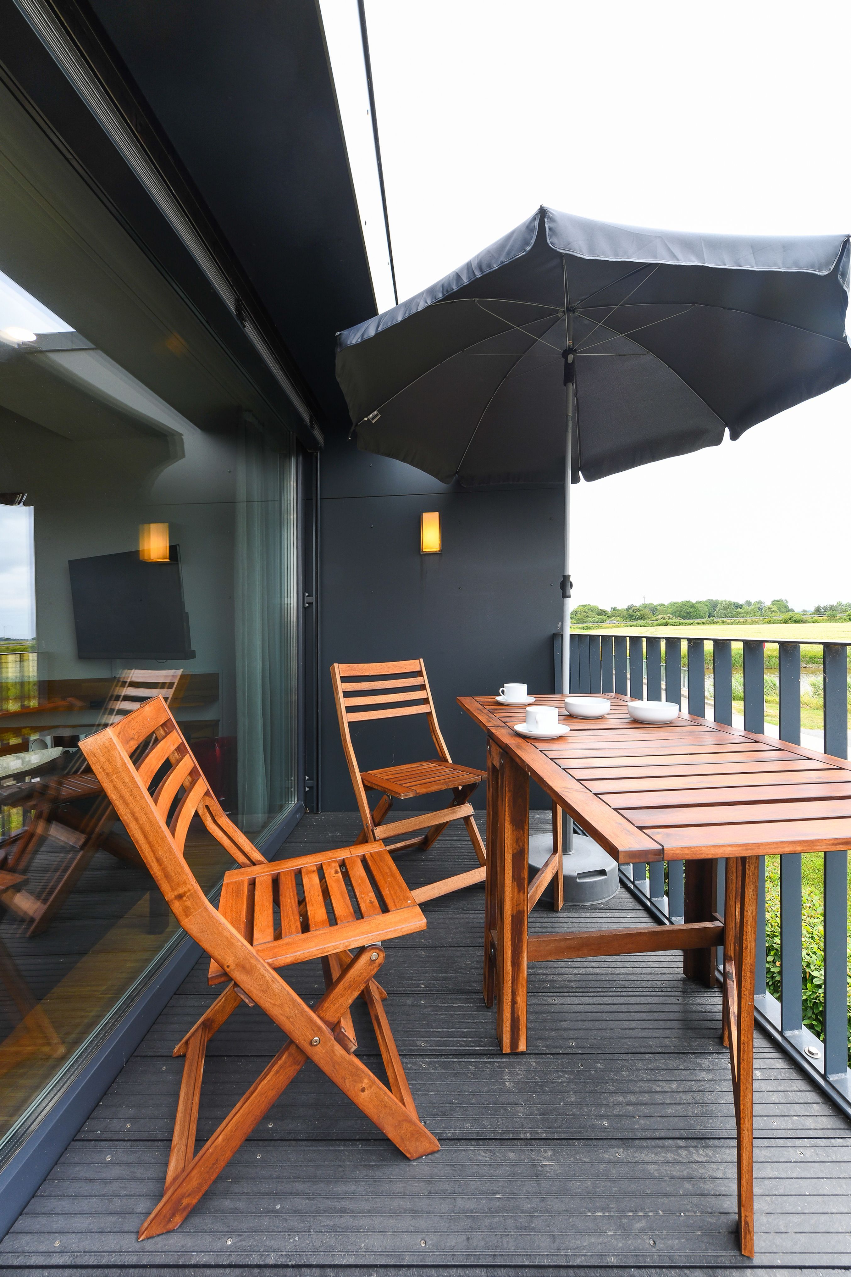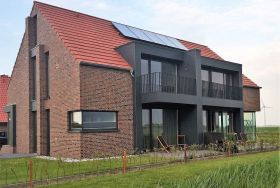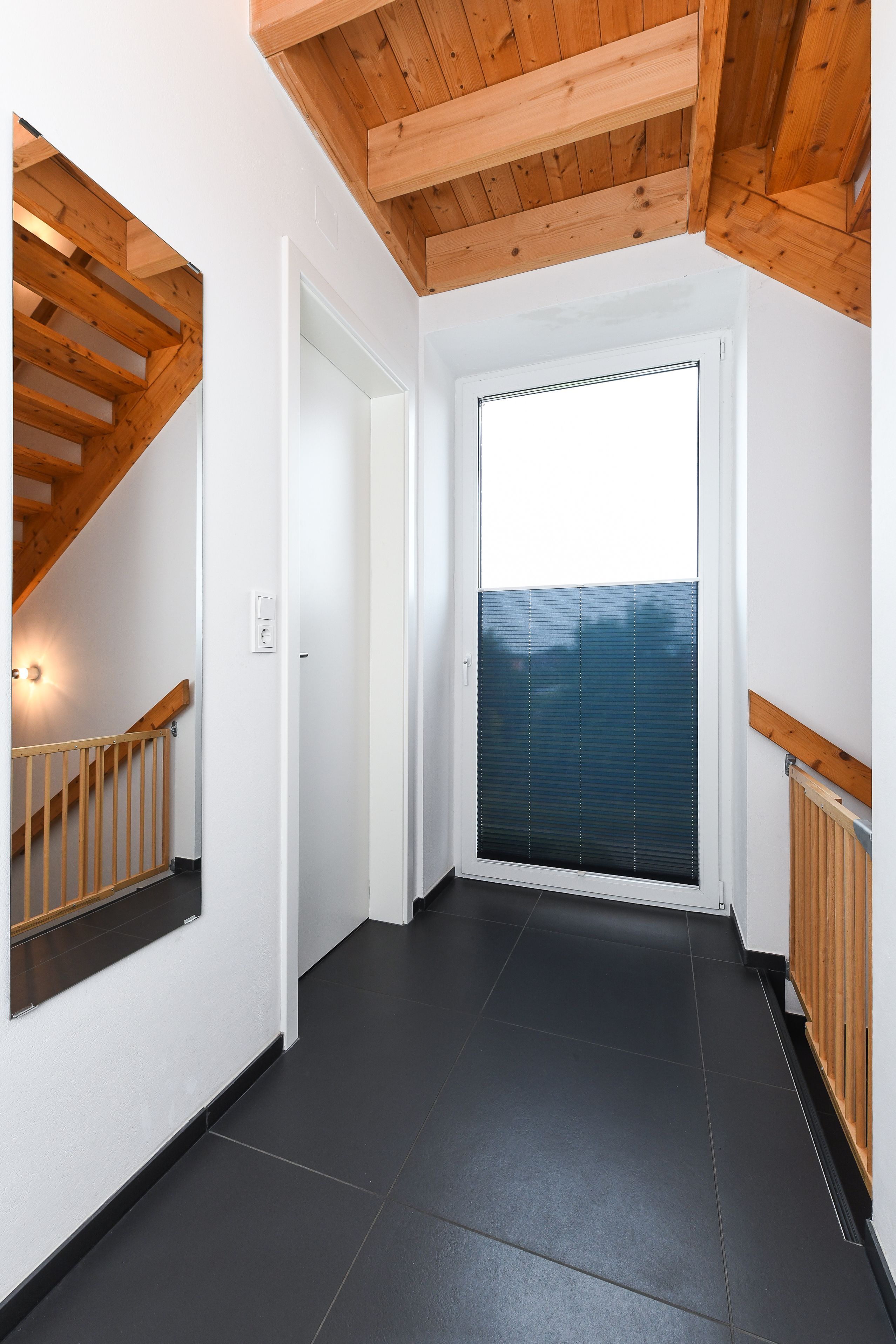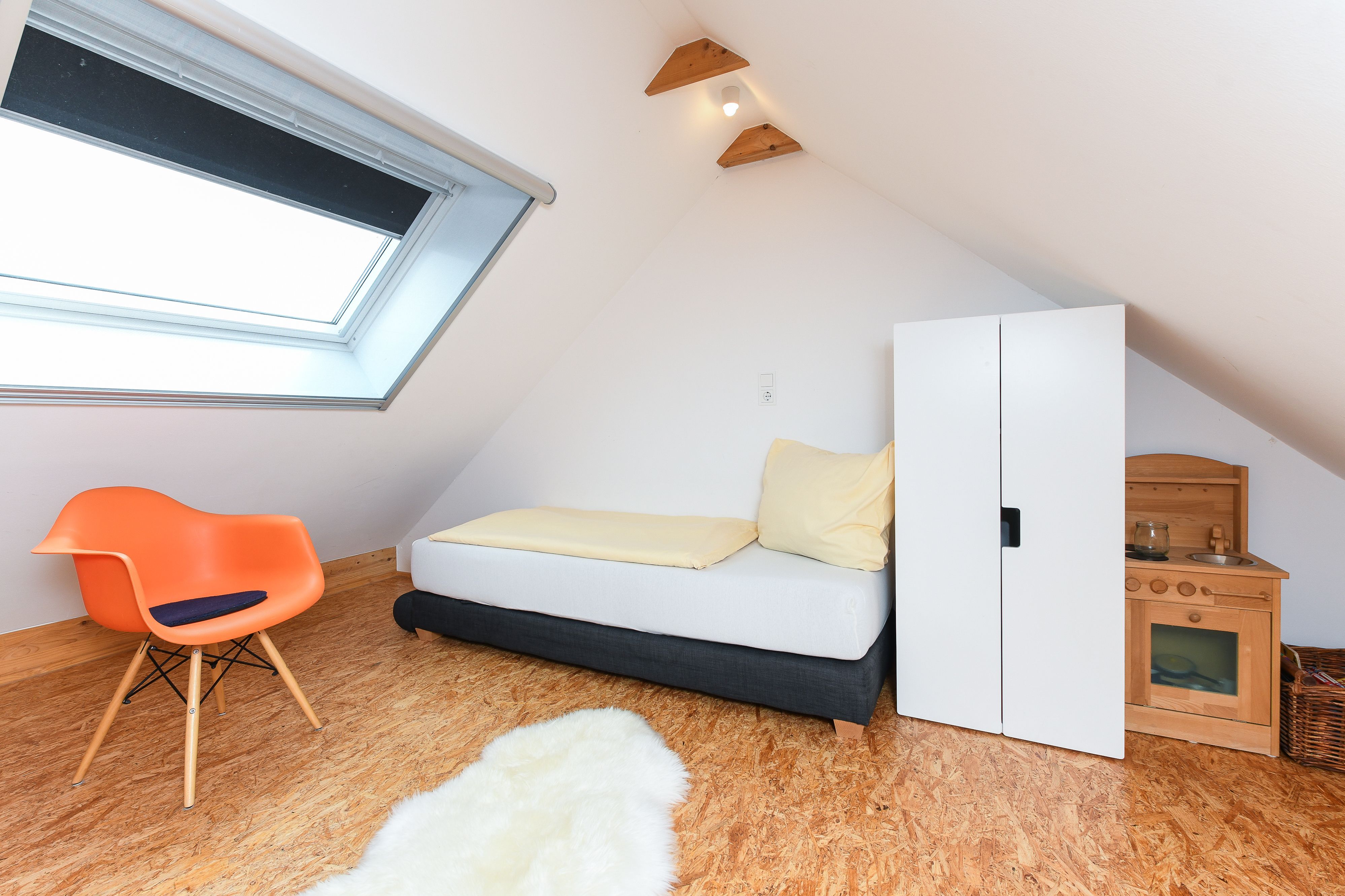 Das Appartement im Obergeschoss (60 m²) der SIELZEIT mit separatem Zugang im Erdgeschoss und einem groß- zügigen Balkon besitzt eine geräumige Wohnküche, zwei separate Schlafzimmer und eine Schlaf- / Spielempore. Es bietet vier bis max. sechs Personen Platz. Bodentiefe Panoramafenster eröffnen einen unverstellten Blick in die weite ostfriesische Landschaft und auf die das Grund- stück umgebenden Gewässer. Die Wohnung verfügt über ein geräumiges Bad mit großzügiger Walk-In-Dusche.