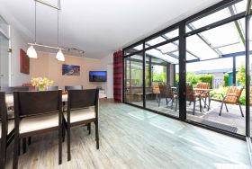 Das Ferienhaus „Strandgold“ in Bensersiel ist freundlich und modern-gemütlich eingerichtet und ausgestattet. Mit ungefähr 67 Quadratmetern Größe ist es ideal für einen Urlaubsaufenthalt für 2 bis 4 Personen geeignet. Es gibt zum Beispiel eine vollständig ausgestattete Küche mit Geschirrspülmaschine und Mikrowelle. Außerdem befinden sich im durch einen Sichtschutzzaun abgeschlossenen Garten eine eigene Sauna und eine schöne möblierte Terrasse.