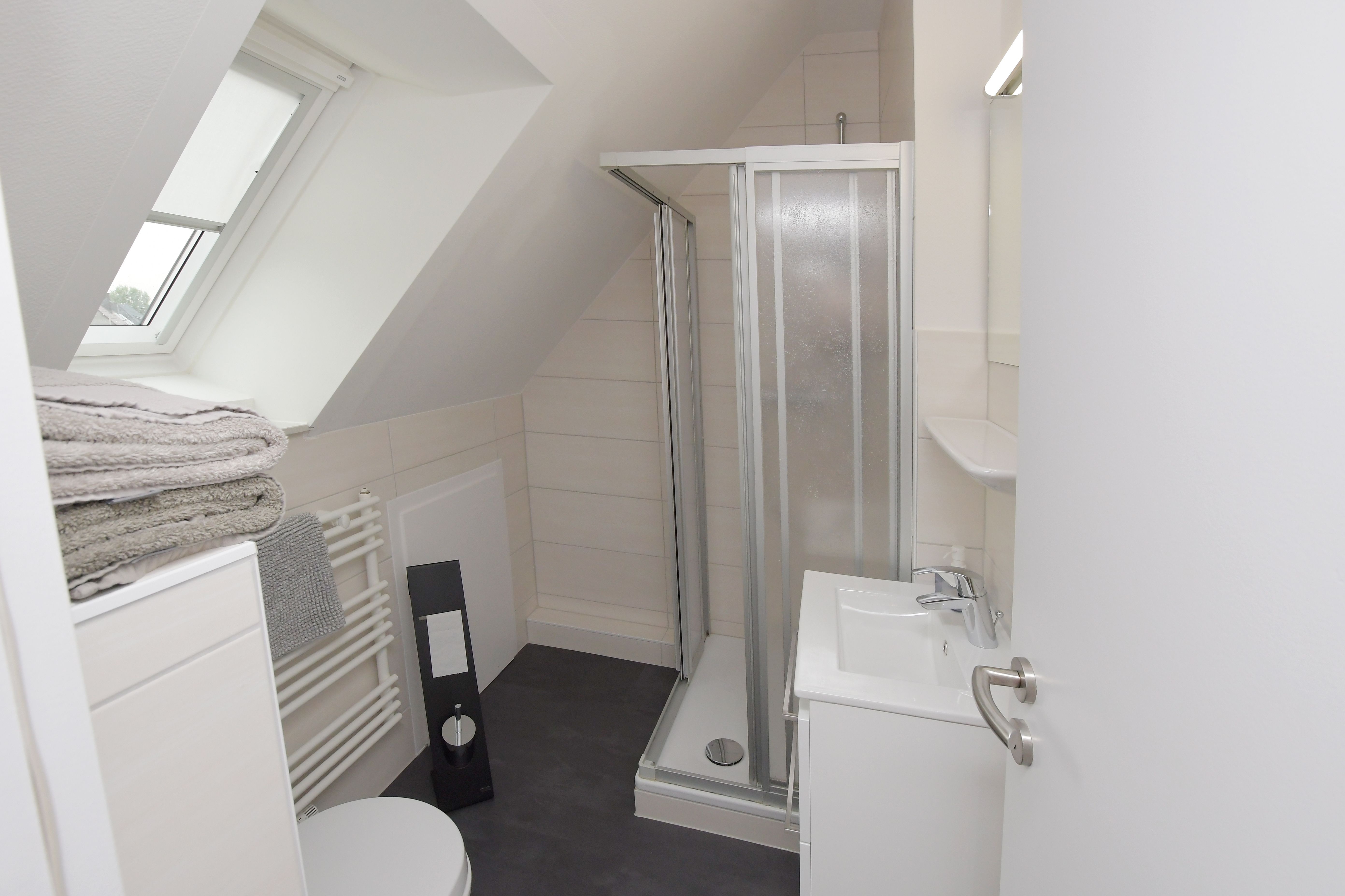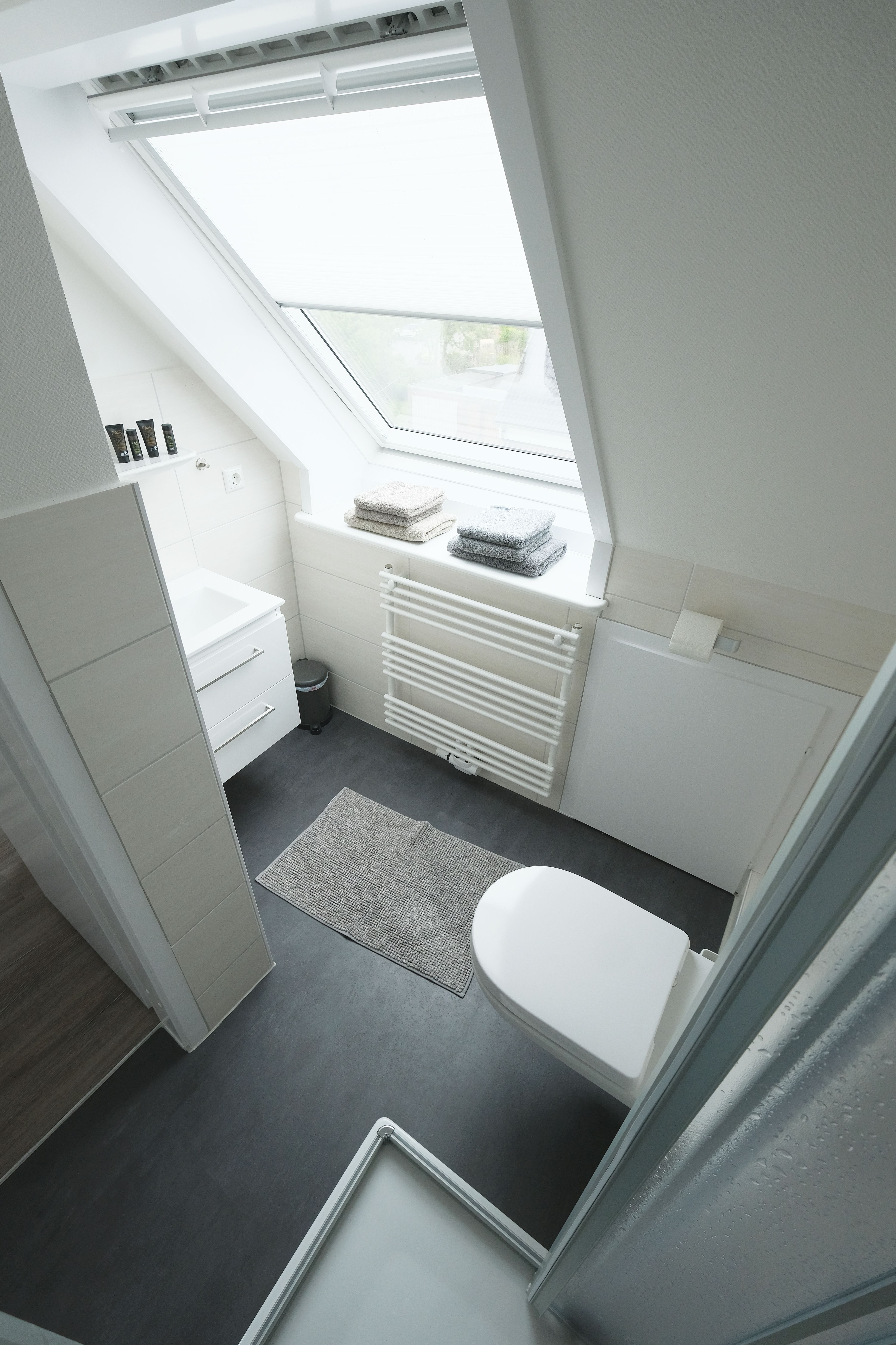 • Helles Duschbad/WC mit Tageslicht.