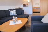 • Im Wohnraum mit Schlafcouch, Sessel, Hocker und Couchtisch machen Sie es sich gemütlich. Unterhaltung bieten Sat-TV, DVD-Player und Radio.