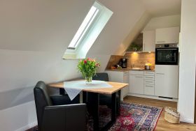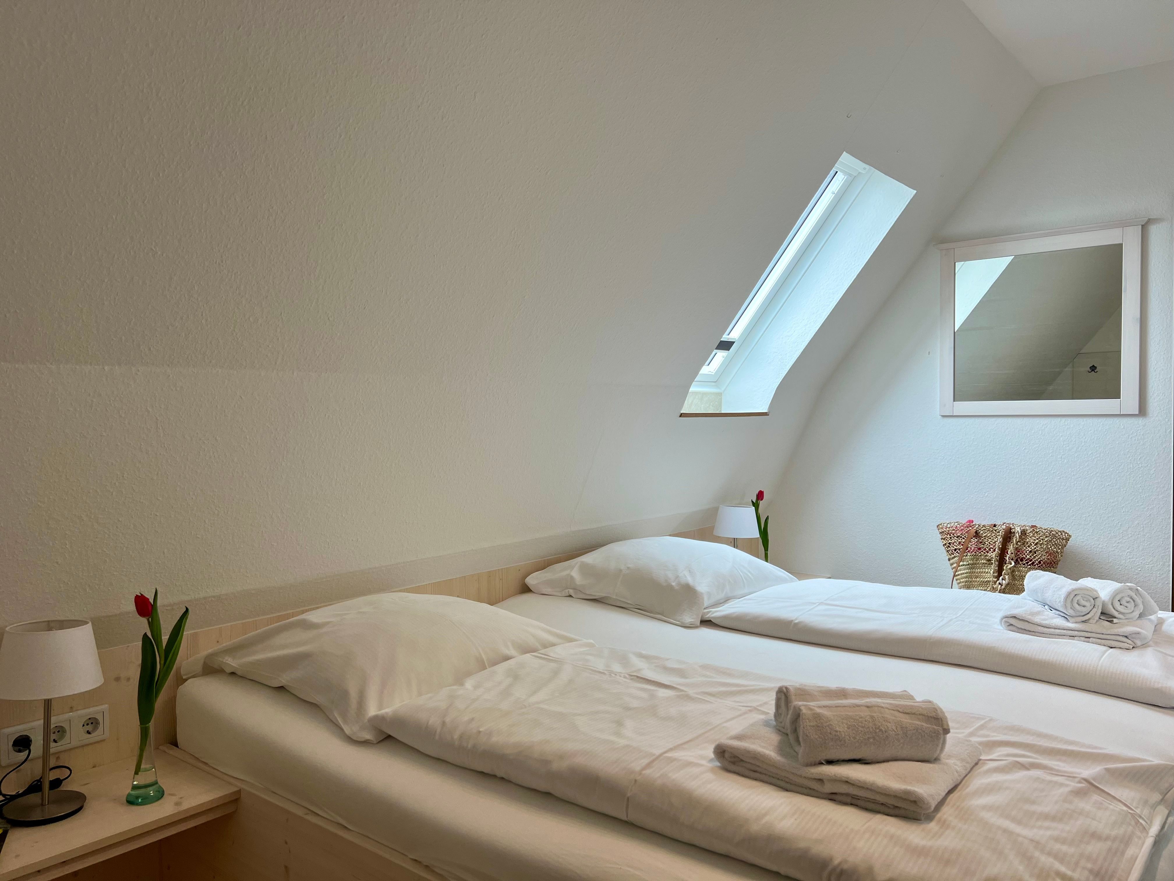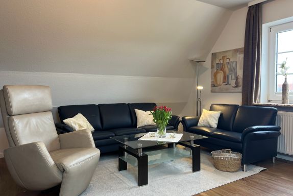 CA. 50 QM FÜR 2 PERSONEN + 1 KIND, MIT PLATZ IM GARTEN Wohnraum mit großer Sitzgarnitur und Relaxsessel, Essbreich, SAT-TV, Laminatböden. Gartenplatz mit Gartenmöbel Schlafraum mit Doppelbett, 2 Nachttischen, großem Kleiderschrank, Wertfach Küchenzeile mit 2 Platteninduktionsherd, Geschirrspüler, Spüle, Kühlschrank, Geschirr und Hausrat, Kaffeemaschine, Wasserkocher und Toaster Dusche/WC, Waschbecken, Spiegelschrank, Föhn.