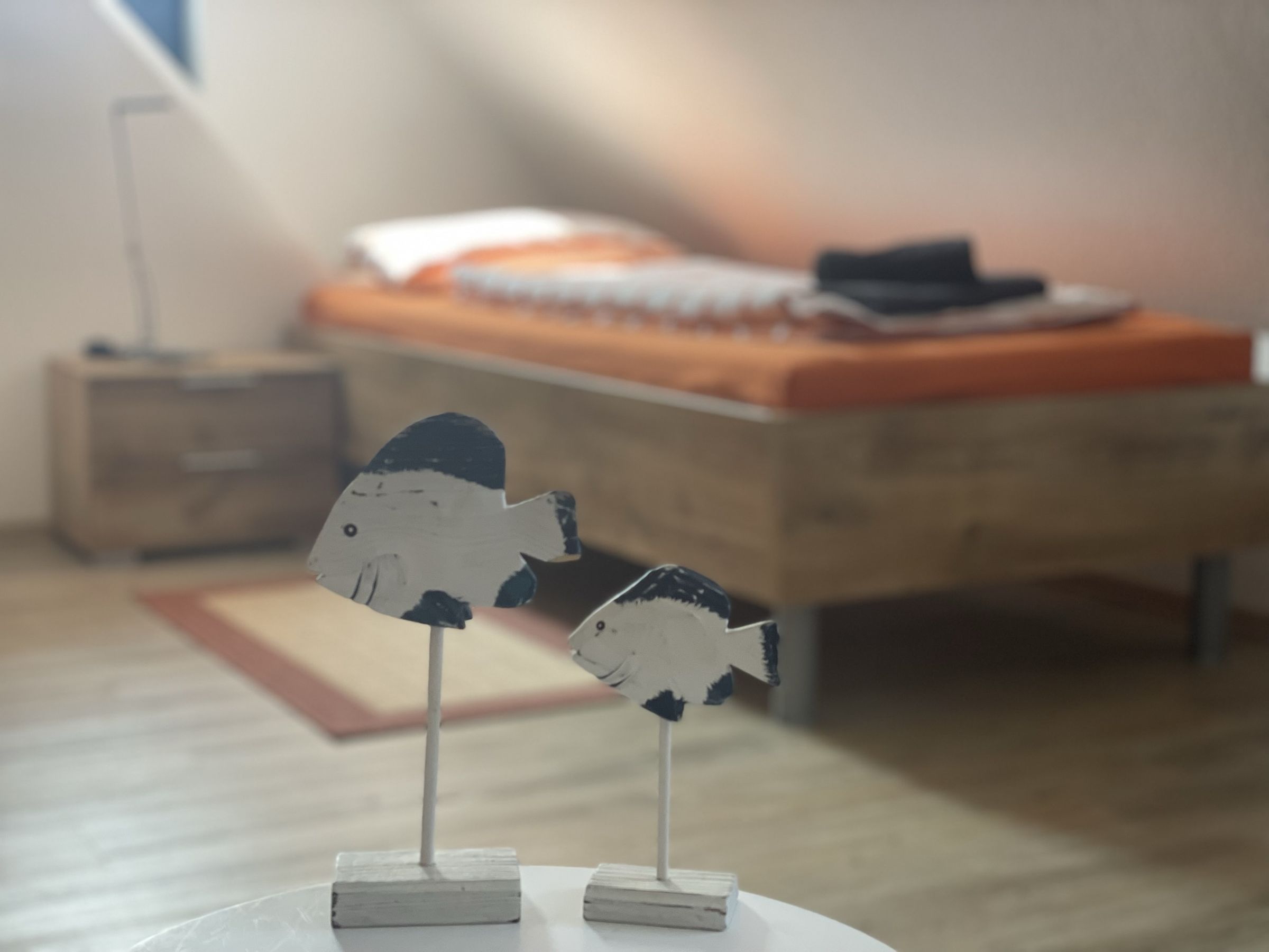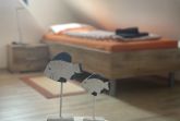 Im Edrgeschoss befindet sich ein Schlafzimmer mit einem Doppelbett.