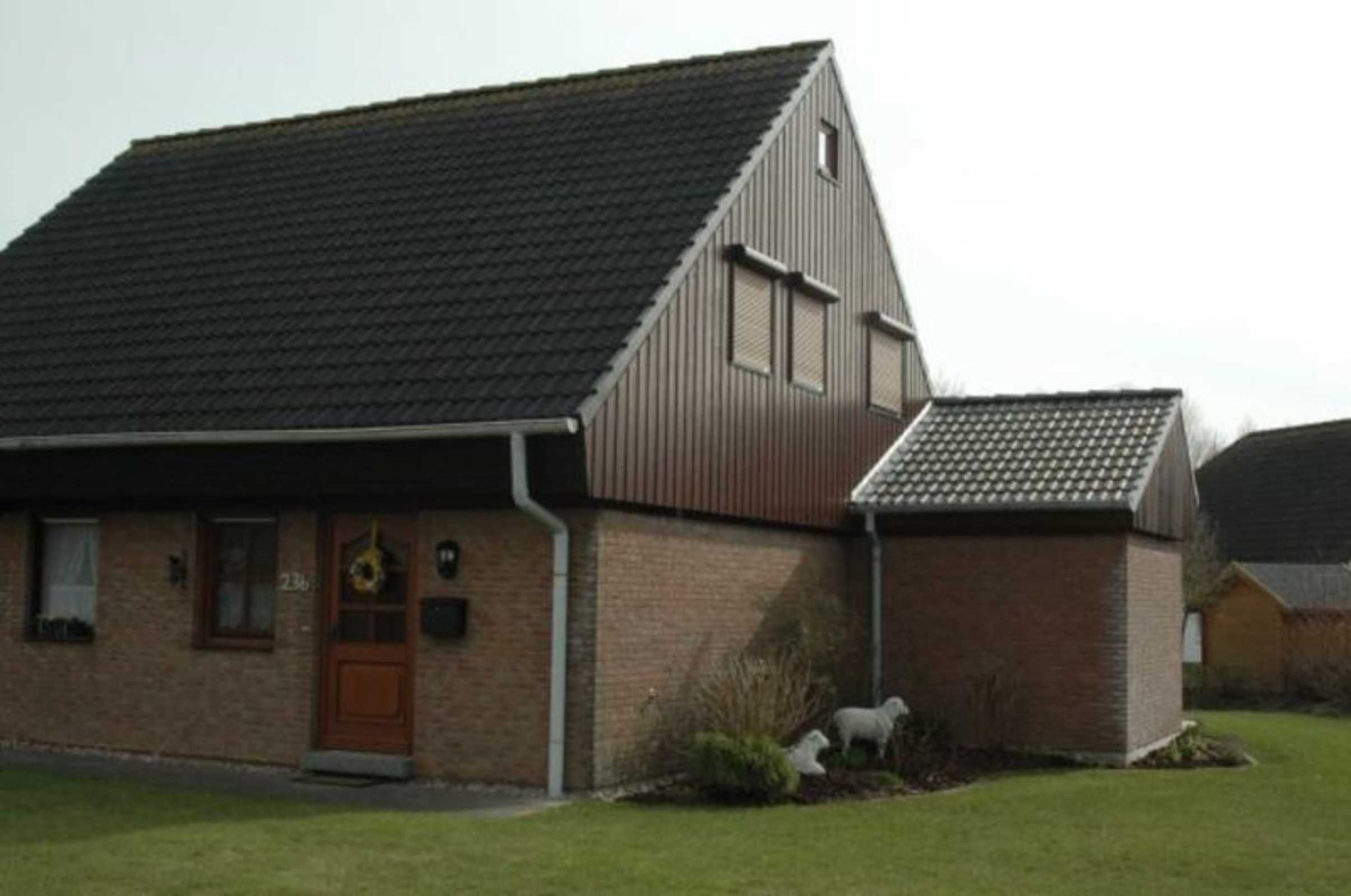 Das Nichtraucher-Ferienhaus (eine Doppelhaushälfte) in Friedrichskoog-Spitze liegt auf einem uneingezäunten Gemeinschaftsgrundstück mit 5 Doppelhäusern. Die Wohnfläche beträgt ca. 60 qm. Es hat vier Schlafplätze zuzügl. einem Kinderbett im Elternschlafzimmer. Im Erdgeschoß befinden sich der Wohnraum mit Schlafcouch, Essecke, Sat-TV, Küche, Gäste-WC und Abstellraum mit Waschmaschine. Die Küche ist ausgestattet mit Geschirrspüler, Mikrowelle, Cerankochfeld. Im Obergeschoss ist ein großes und kleines Schlafzimmer für jeweils zwei Personen und Dusche/WC. Bettwäsche und Handtücher wären mitzubringen.