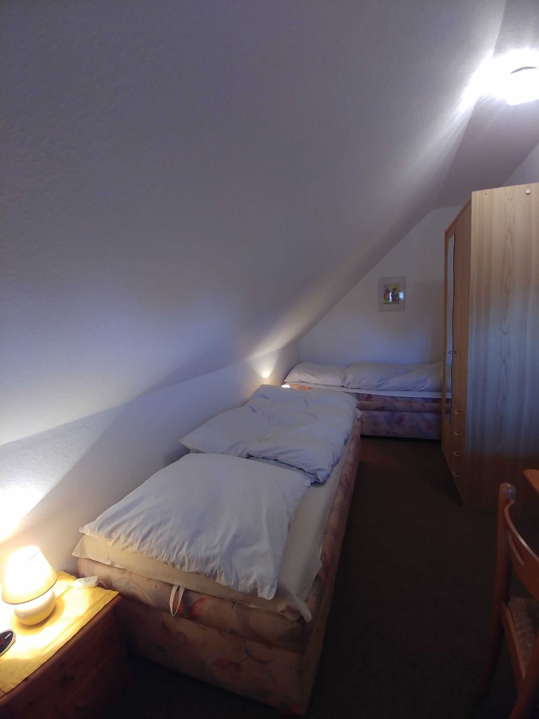 • 1 Schlafzimmer mit 2 Einzelbetten (90x200cm) im OG