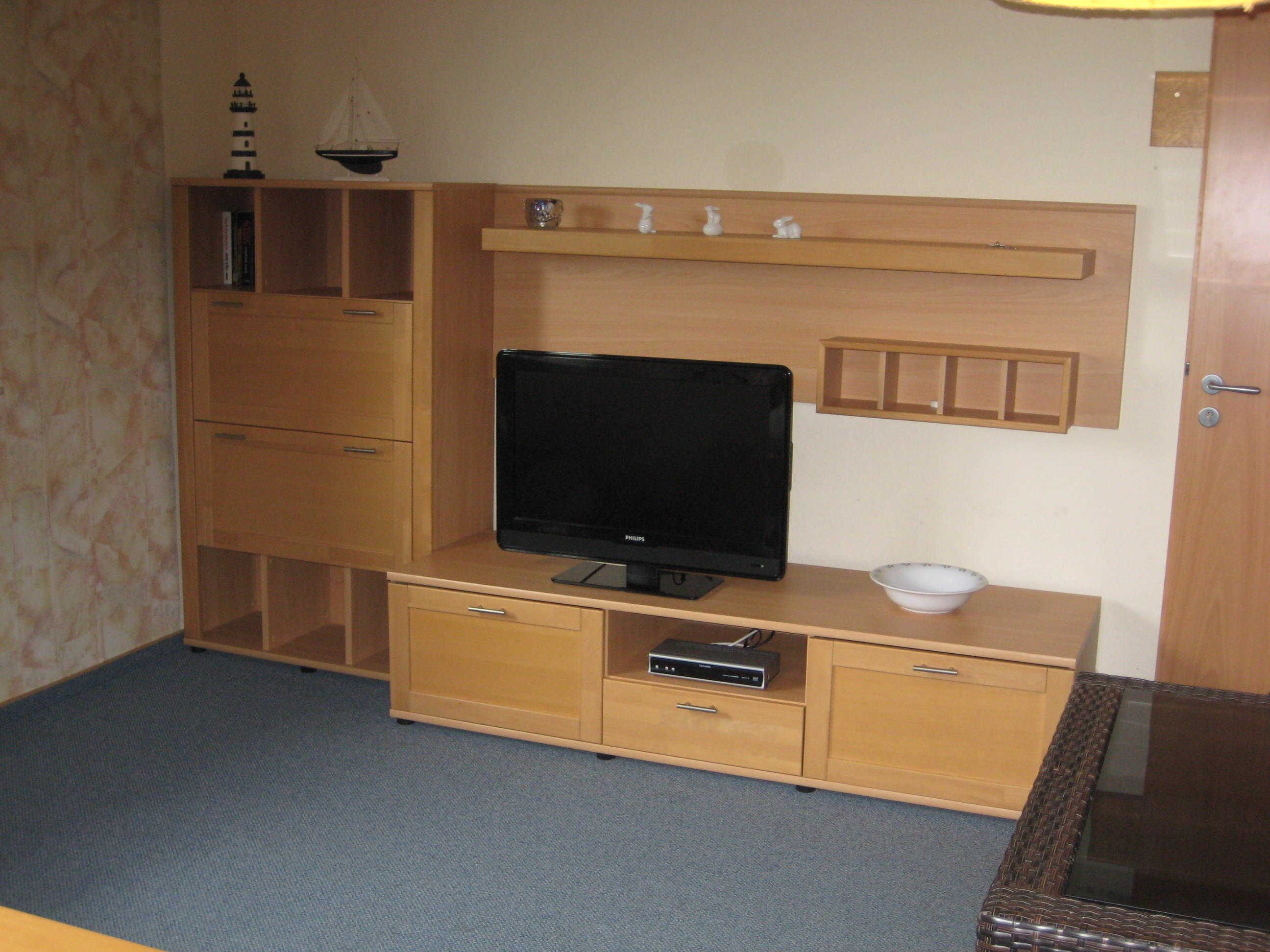 • Wohnzimmer mit Couch und Schrankwand, SAT-TV, Radioempfang über SAT-TV, Eßplatz, Teppichboden.