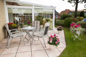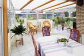Der Wintergarten ist Frühstücks-und Aufenthalsraum für Sie. Dort können Sie die Morgensonne genießen entweder drinnen oder auf der Terrasse frühstücken. Auch der Fernseher oder eine Hifi-Minianlage fehlt nicht.