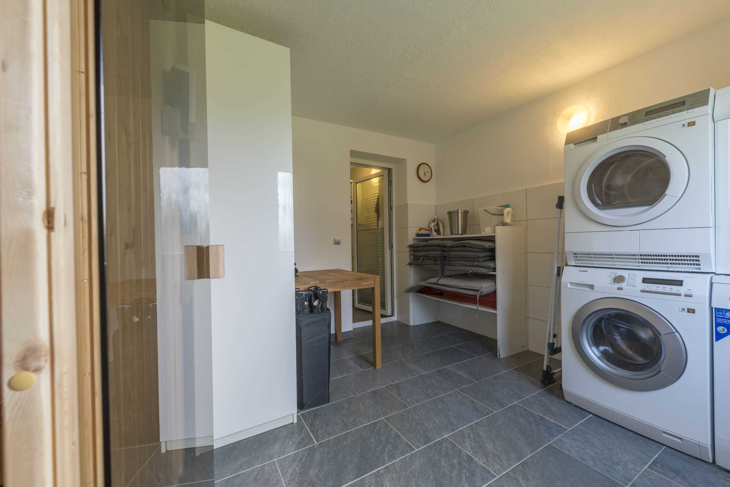 • Hauswirtschaftsraum mit Waschmaschine, Trockner und Fahrradunterstellmöglichkeit