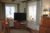 • Geschmackvoll eingerichtetes Wohnzimmer mit SAT-TV, Videorecorder und Radio. 'Couchgarnitur mit Rundecke und Sessel.