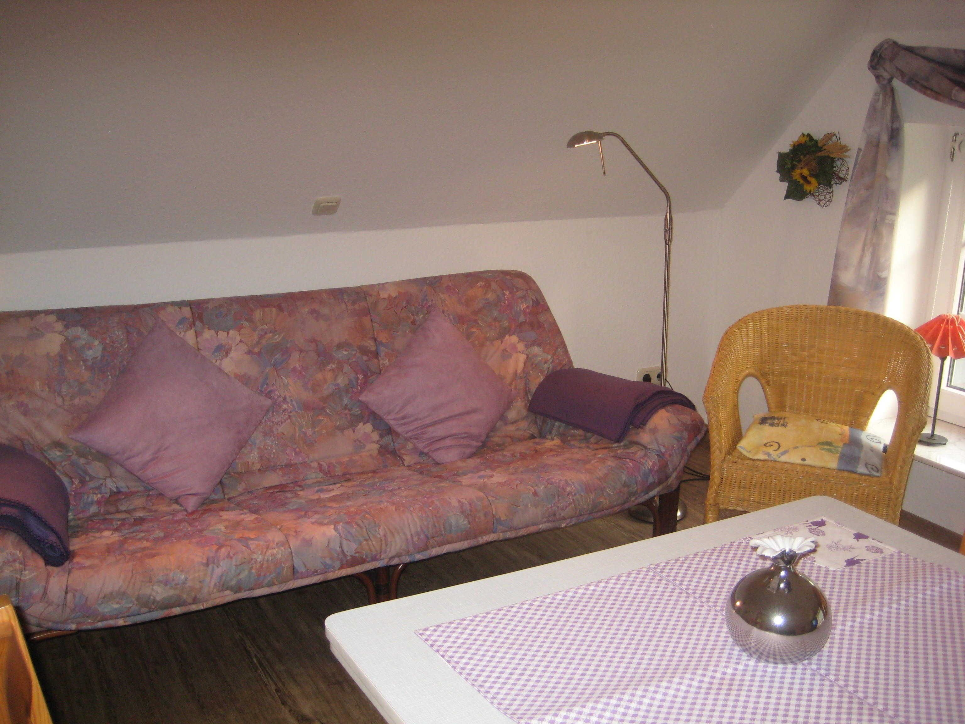 • 2. Wohnzimmer mit Doppelbett-Schlafcouch, SAT-TV und Radio.