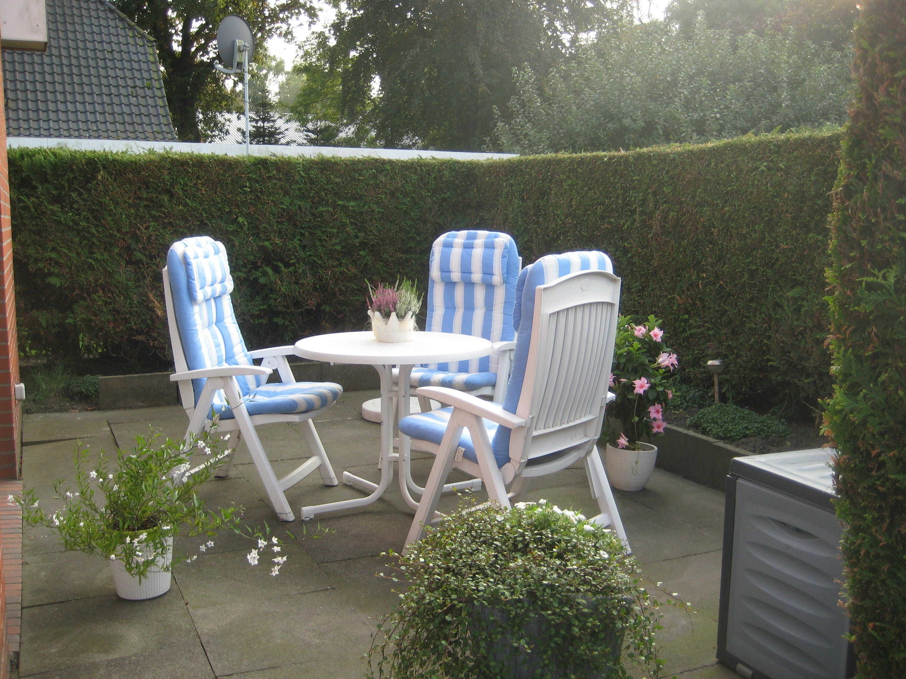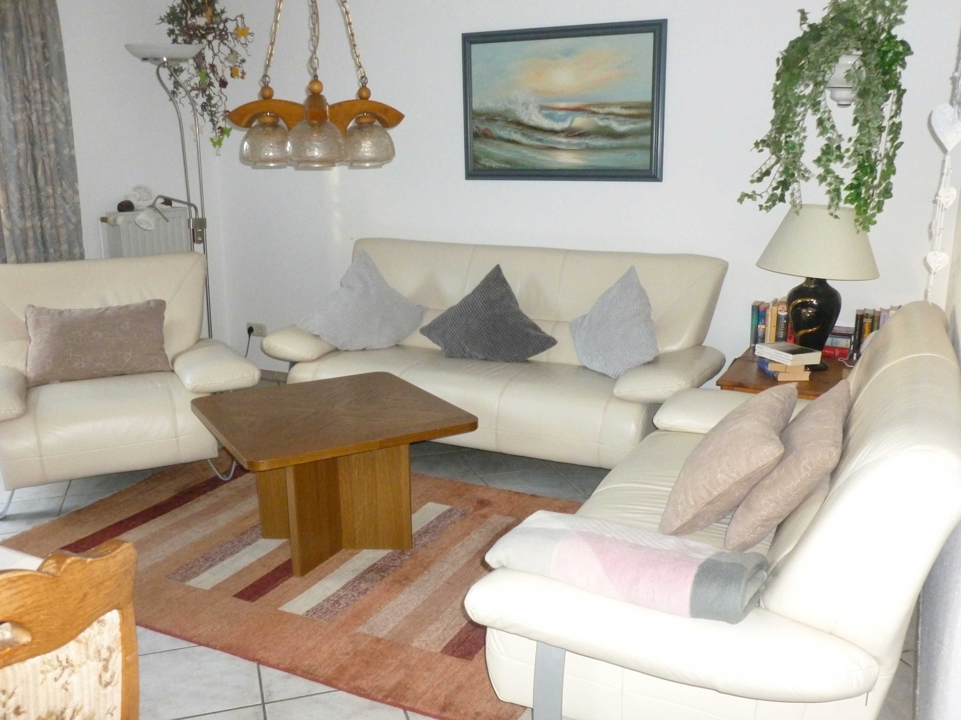 • 3. Wohnzimmer mit Essecke, Radio und SAT-TV vorhanden. Eine große Schiebetür führt direkt auf die mit einer Hecke eingefasste eigene Terrasse.