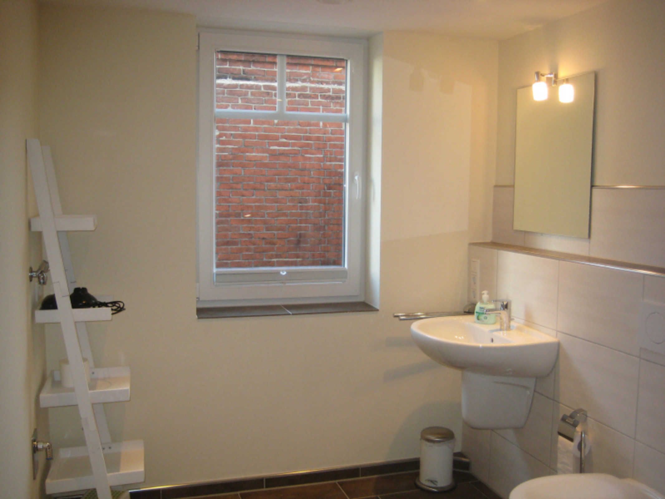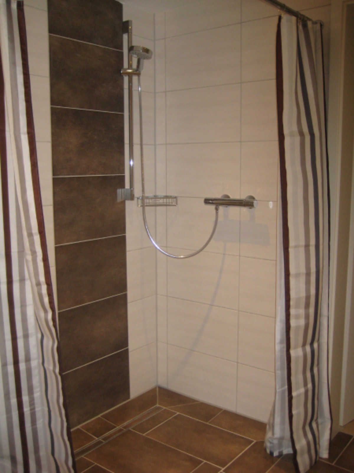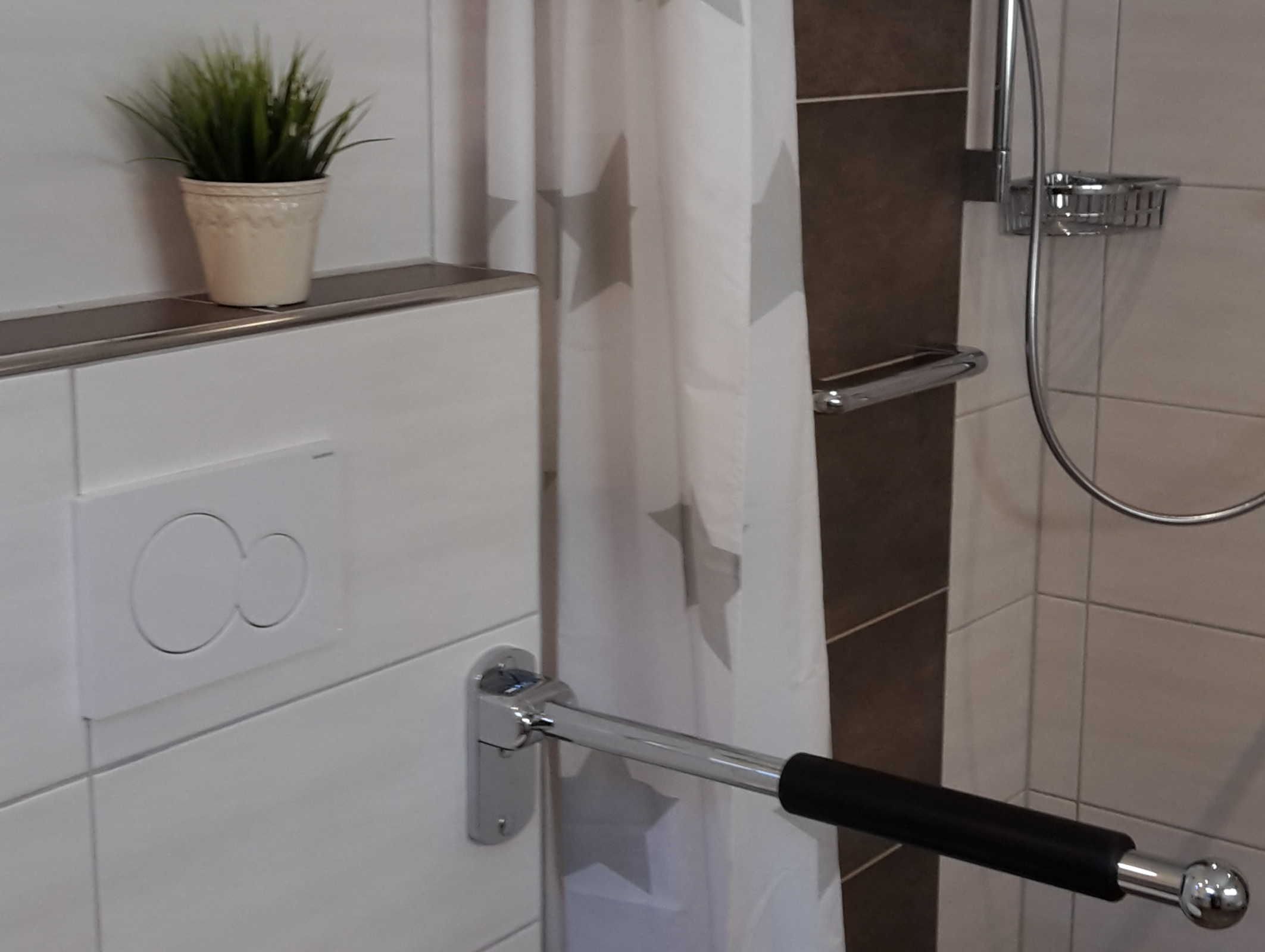 • Das modern eingerichtete Tageslicht-Badezimmer ist behindertenfreundlich und verfügt über eine bodengleiche Dusche von 1,00 x 1,00 m und WC.