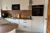Separate Küche mit Kühl-/Gefrierkombi, Geschirrspülmaschine, Backofen, Induktions-Kochfeld, Mikrowelle und Kaffeevollautomaten.