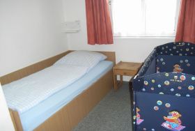 48m² große Wohnung mit separater Terrasse. Ein modern gestalteter offener Wohn- und Essbereich lädt zu gemütlichen Abenden für bis zu vier Personen ein. Zwei getrennte Schlafräume, einer mit Doppelbett und einer mit zwei getrennten Betten. Das moderne Tageslichtbad ist hell und komfortabel ausgestattet. Kinderbett auf Anfrage möglich!