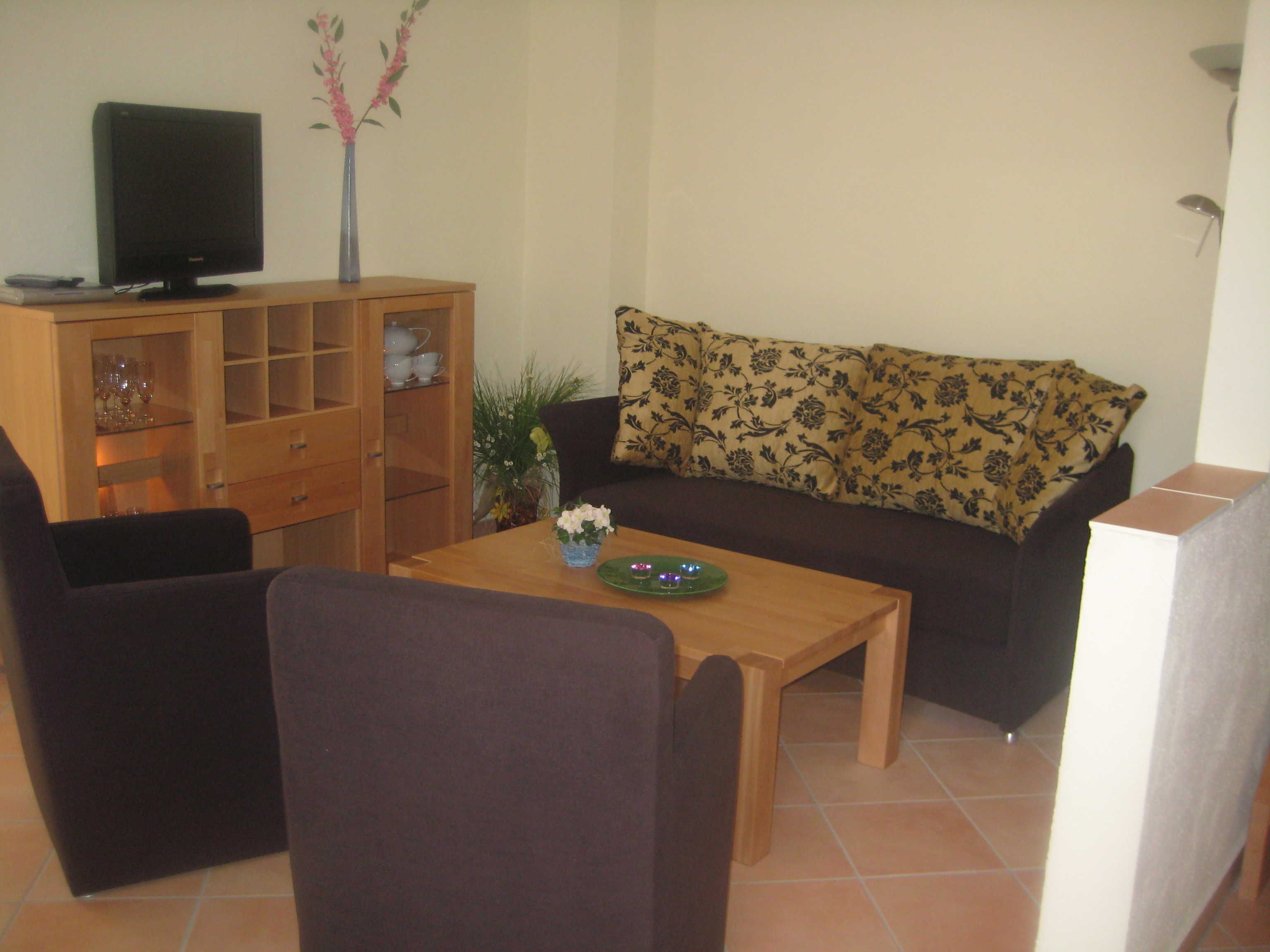 Im Haus befinden sich Ferienwohnungen und Maisonette-Wohnungen mit Gartenanteil.