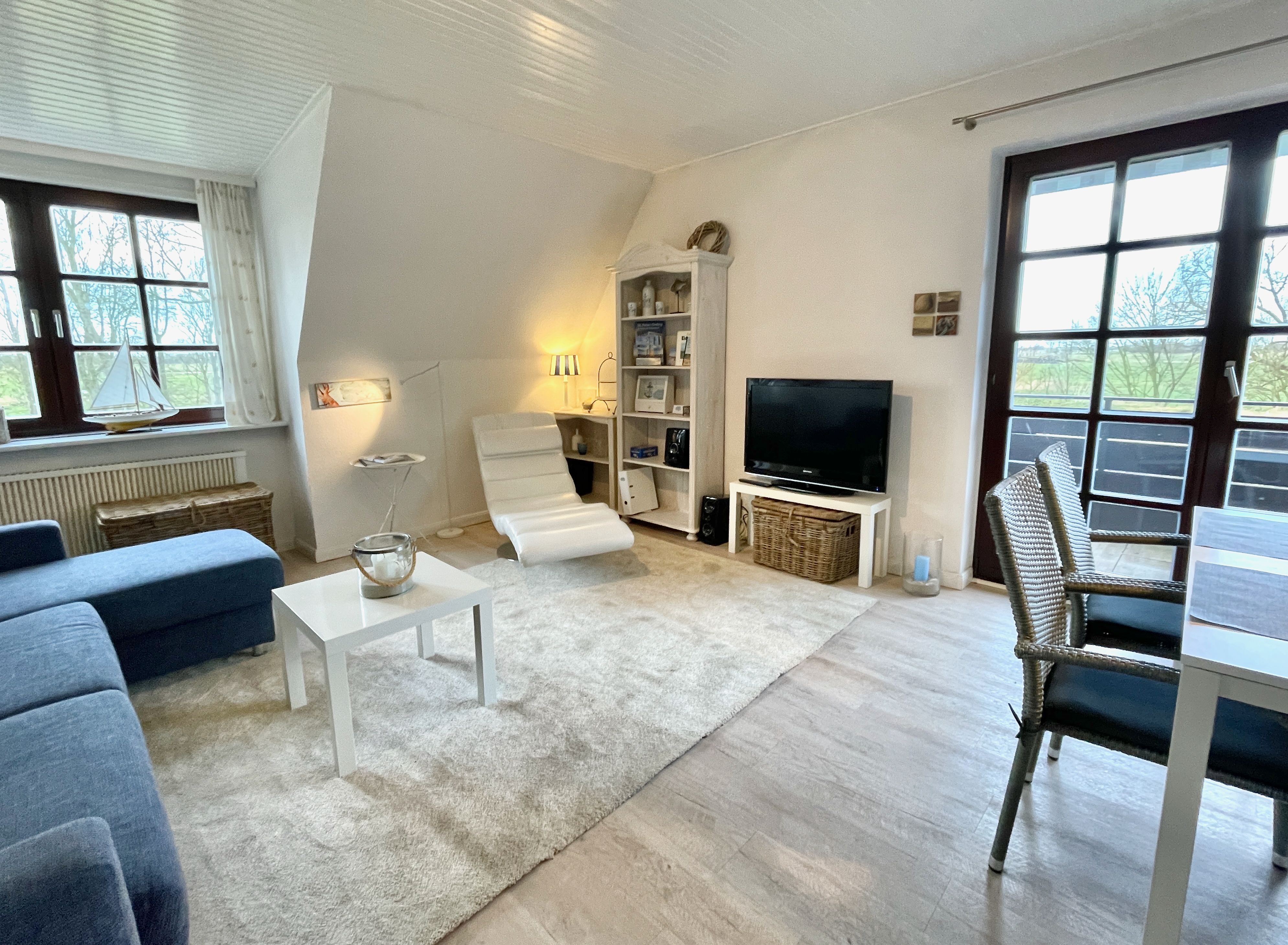 Die Appartements SEEWOLKE N°1 und N°2 befinden sich im 1. Stock, N°3 im EG eines Ferienhauses mit nur 10 Wohneinheiten in Katingsiel, einer der kleinsten und ruhigsten Siedlungen auf Eiderstedt.