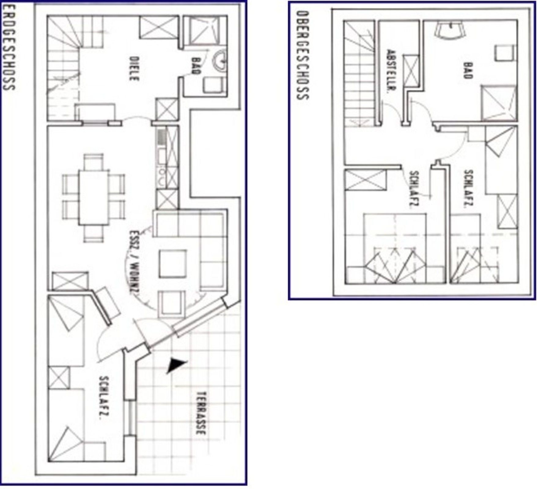 1 Schlafzimmer mit Doppelbett und 1 Schlaf- oder Kinderzimmer mit 2 Einzelbetten.