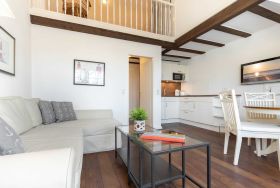 liegt das charmante Appartement friedvoll und romantisch im alten Dorfkern von Westerland. Der Strand, das Sylter Wellnesscenter sowie die Kureinrichtungen sind ebenfalls zu Fuß erreichbar. Alternativ kann man die Insel auch mit dem Bus oder dem Fahrrad erkunden. Die Bushaltestelle sowie mehrere Fahrradverleihe liegen in unmittelbarer Nähe des Hauses. Das Haus befindet sich zwischen dem Kirchenweg und der Gartenstraße (ruhige Sackgasse).