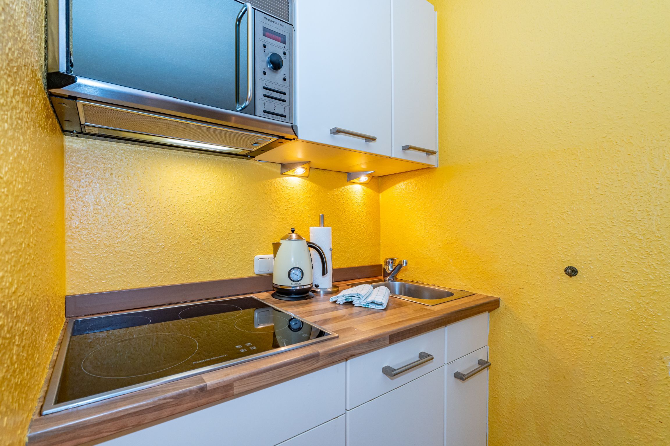 Die Wohnungen sind hell und freundlich gestaltet und mit einer zweckmäßigen, vollständigen Einrichtung ausgestattet. Große Fenster lassen viel Tageslicht herein und eröffnen den Blick ins Grüne.