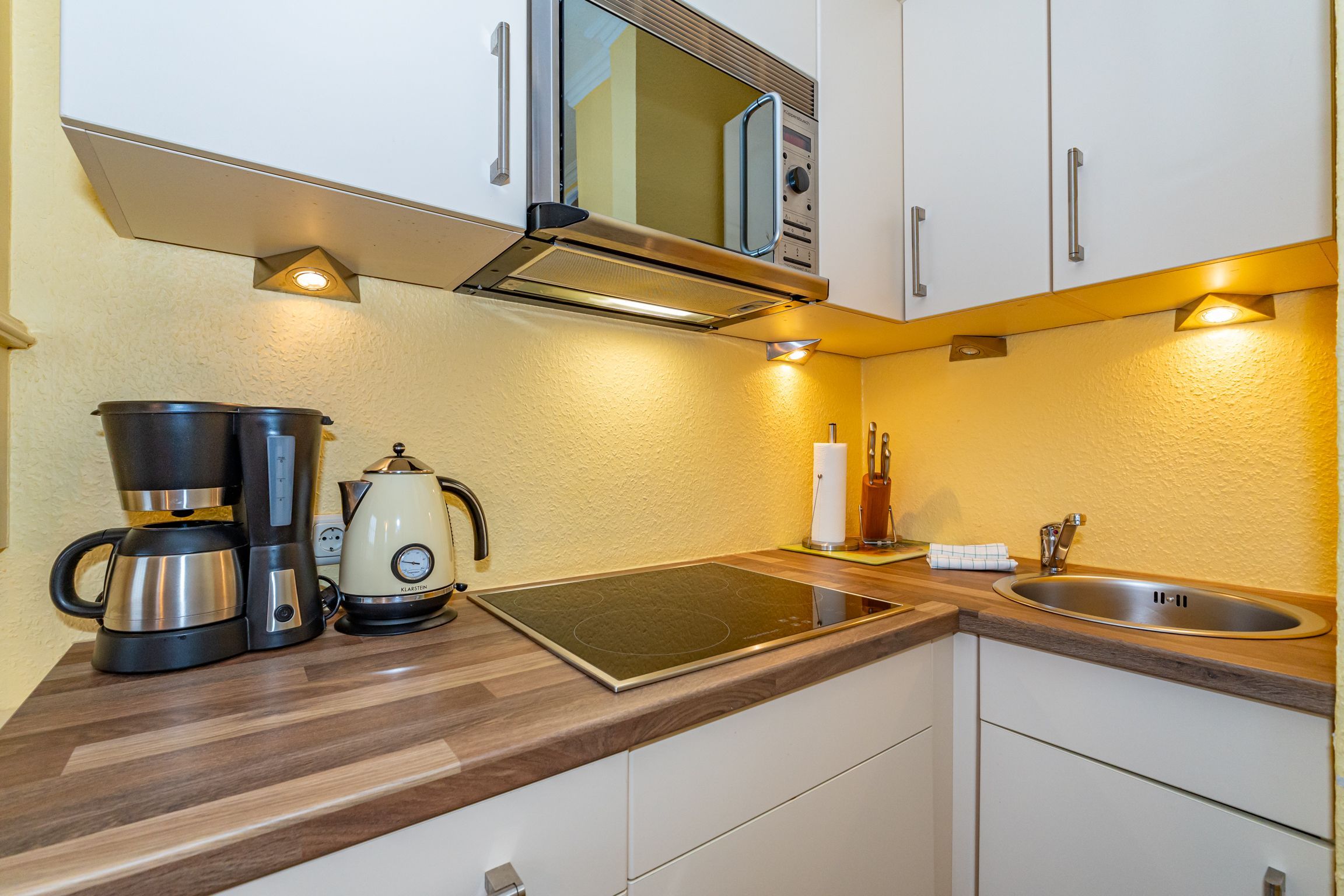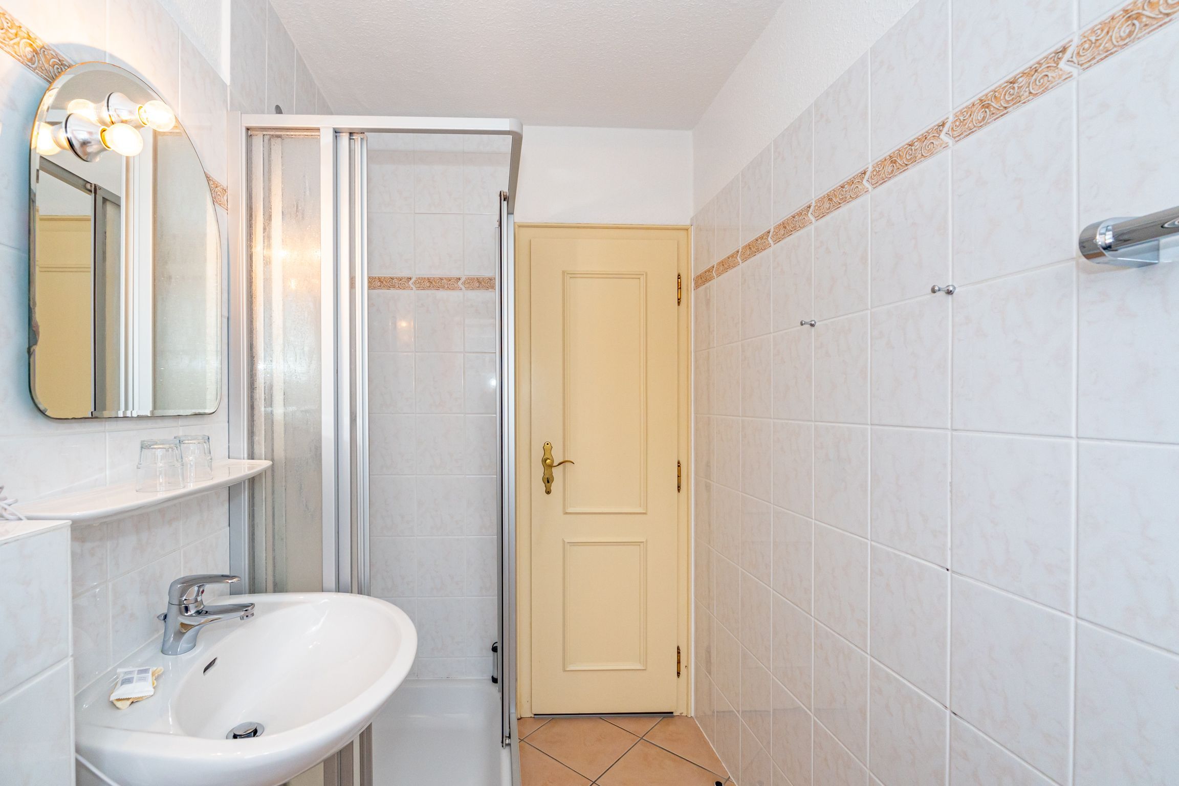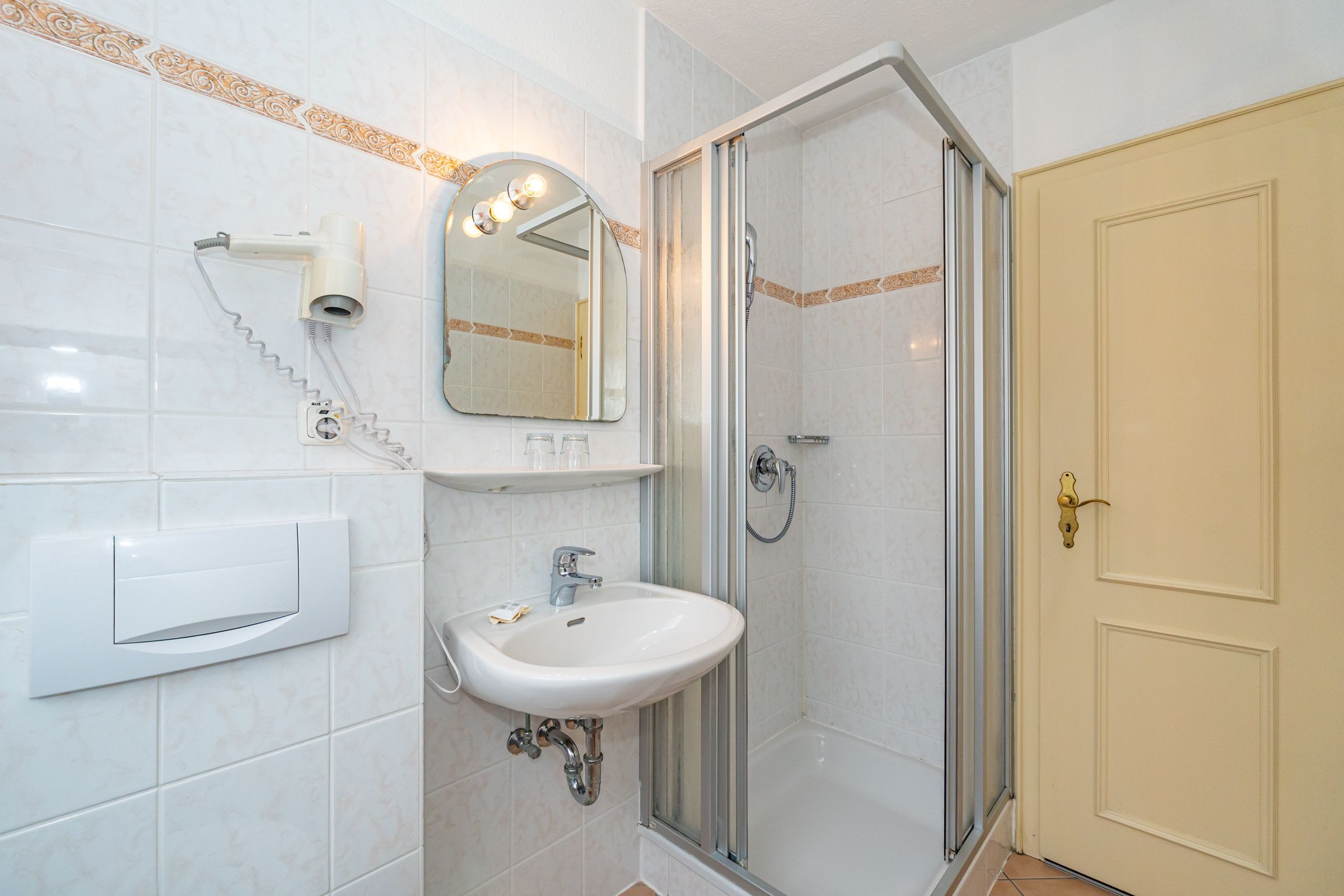 Das Apartment mit der Nummer sechs ist im 1. Obergeschoss zu finden und bietet auf 30 Quadratmeter Platz für 2 Personen. Im offen gestalteten Wohn- und Essbereich stehen 2 gemütliche Alkovenbetten. Das Bad ist ausgestattet mit Dusche, WC und Waschbecken.