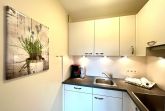 Separate und neuwertige Küche mit Cerankochfeld, Backofen, Geschirrspüler, Mikrowelle, Kühlschrank mit Gefrierfach, Kaffeemaschine, Wasserkocher und reichlich Geschirr für den täglichen Bedarf sind selbstverständlich.