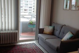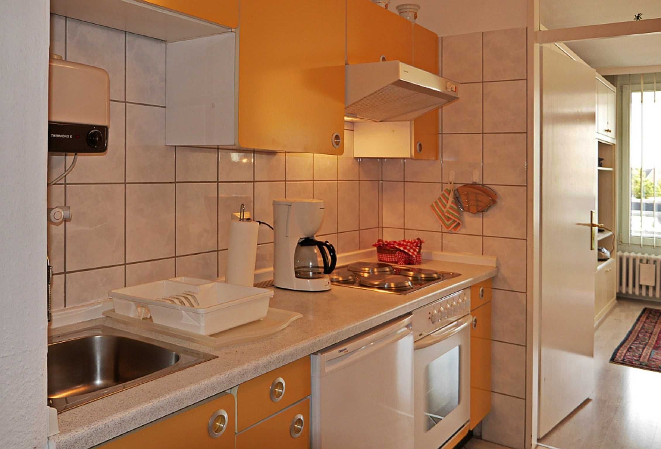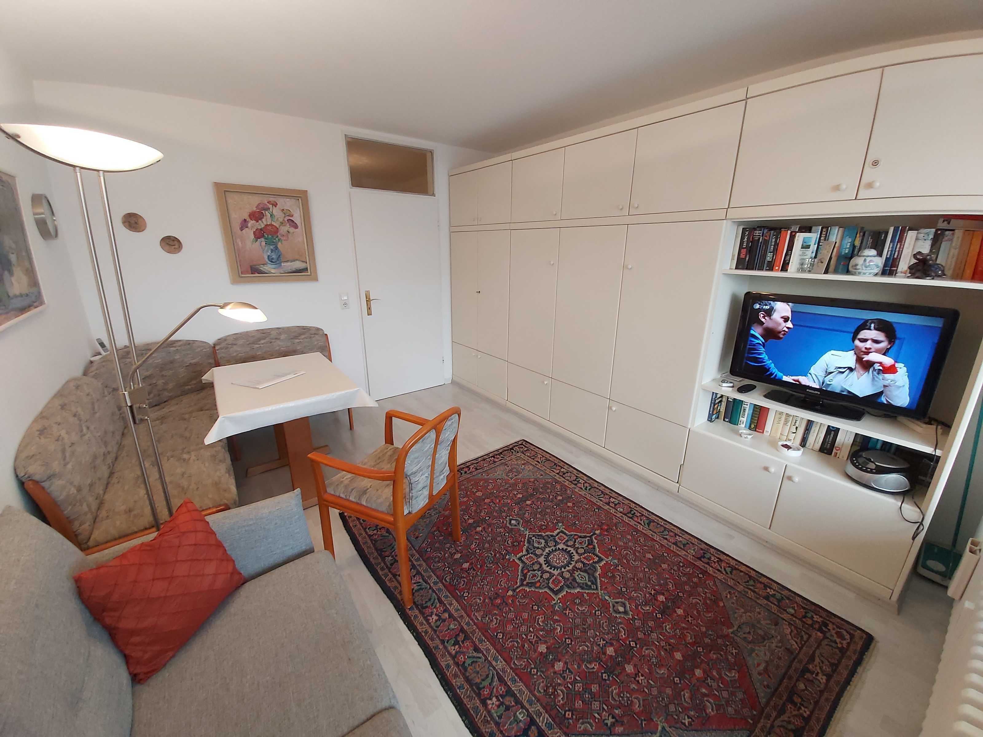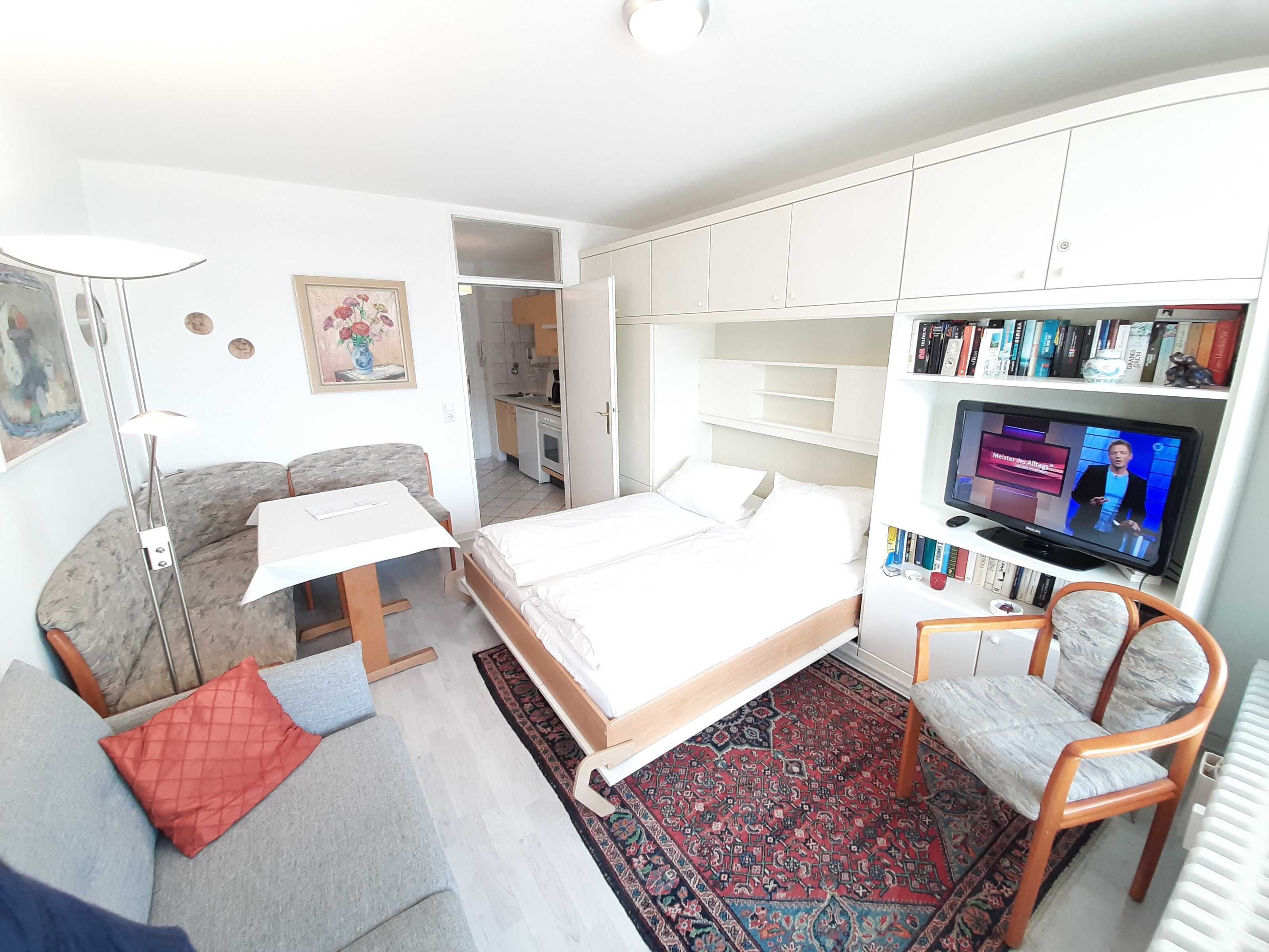 Die Nichtraucher-Einraum-Wohnung für 1-2 Personen befindet sich in der 1. Etage des Appartementhauses (Fahrstuhl vorhanden). Sie hat eine Größe von ca.29,5m² und mit einfacher Ausstattung eingerichtet. Der kombinierte Wohn-Schlafraum verfügt über ein Doppelschrankbett (1,60 x 1,90 m) einen Esstisch mit Essecke, sowie einem Sofa und einem Farb-TV (Flachbildschirm). Die Küchenzeile mit Elektroherd, Kühlschrank und Spüle befindet sich im Flurbereich. Badezimmer mit Dusche/WC. Die Wohnung verfügt über einen überdachten Balkon (Loggia) Richtung Osten mit Balkonmöbeln. W-LAN vorhanden. Waschmaschinen und Trocknernutzung im Haus vorhanden! Haustiere sind nicht erlaubt!