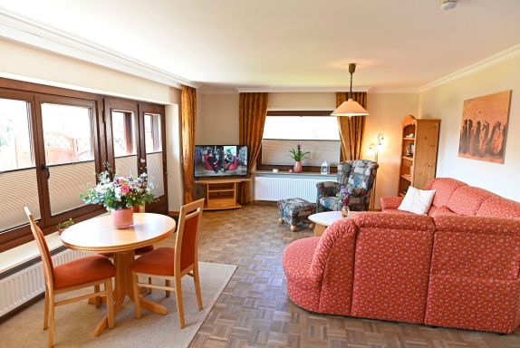 Eine 1-Zimmerwohnung für 2 Personen mit Terrasse befindet sich im Erdgeschoss. Parkmöglichkeit auf der Südseite des Hauses zu erreichen über die Zufahrt über Keitumer Chaussee in den C.-M.-Claasen-Weg.