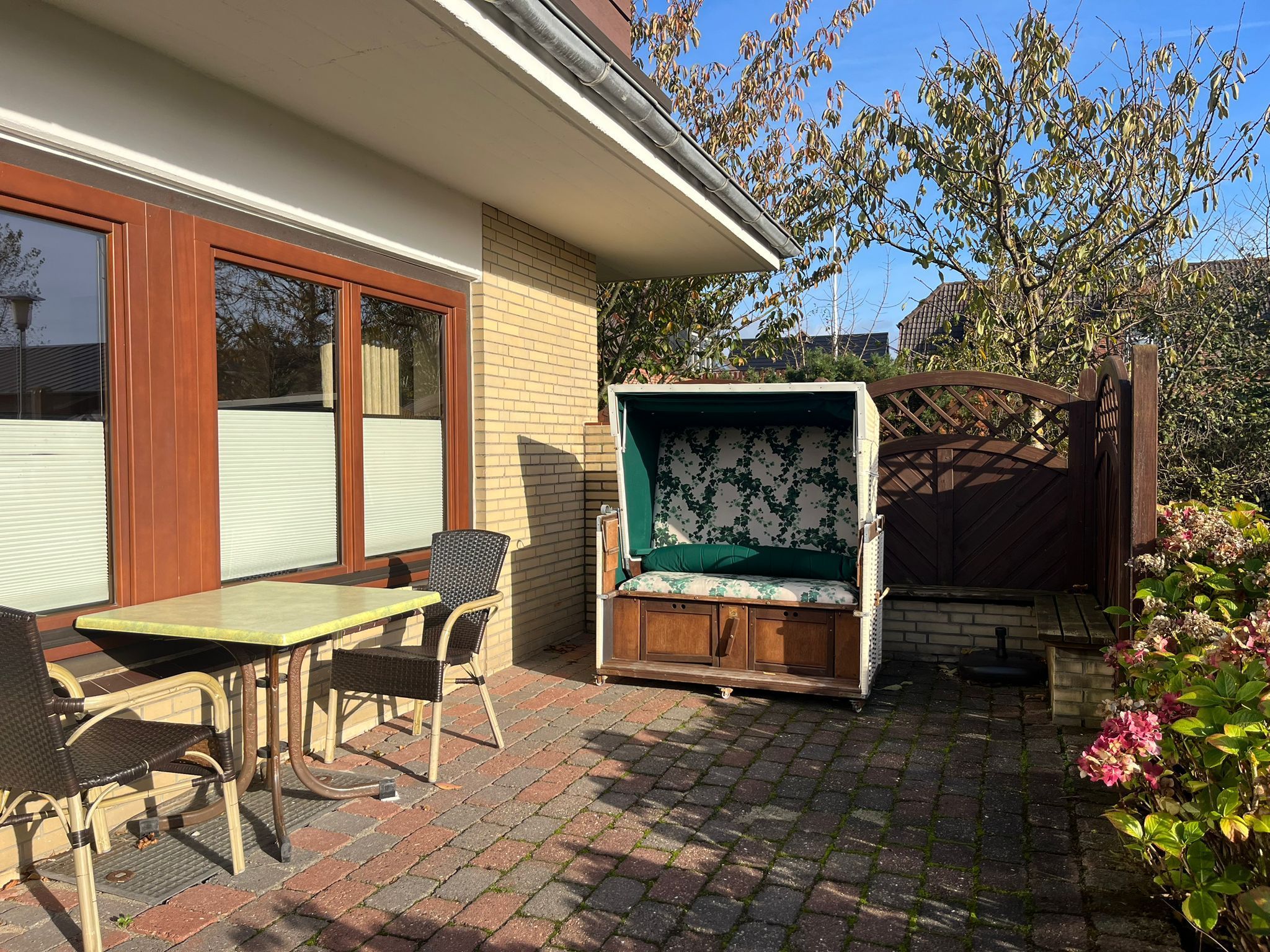 Die möblierte Südterrasse lädt zum Verweilen ein.