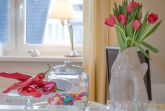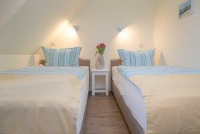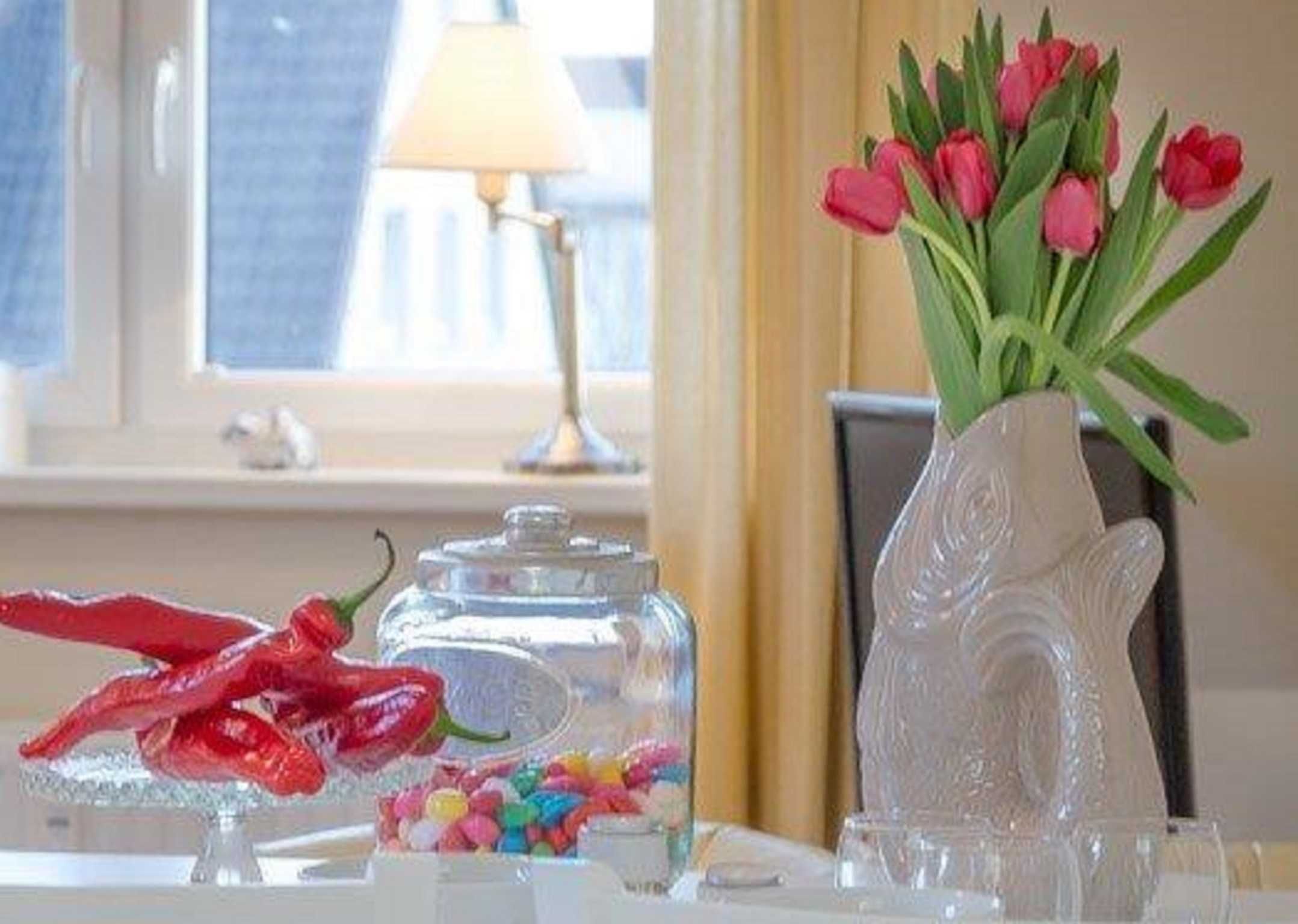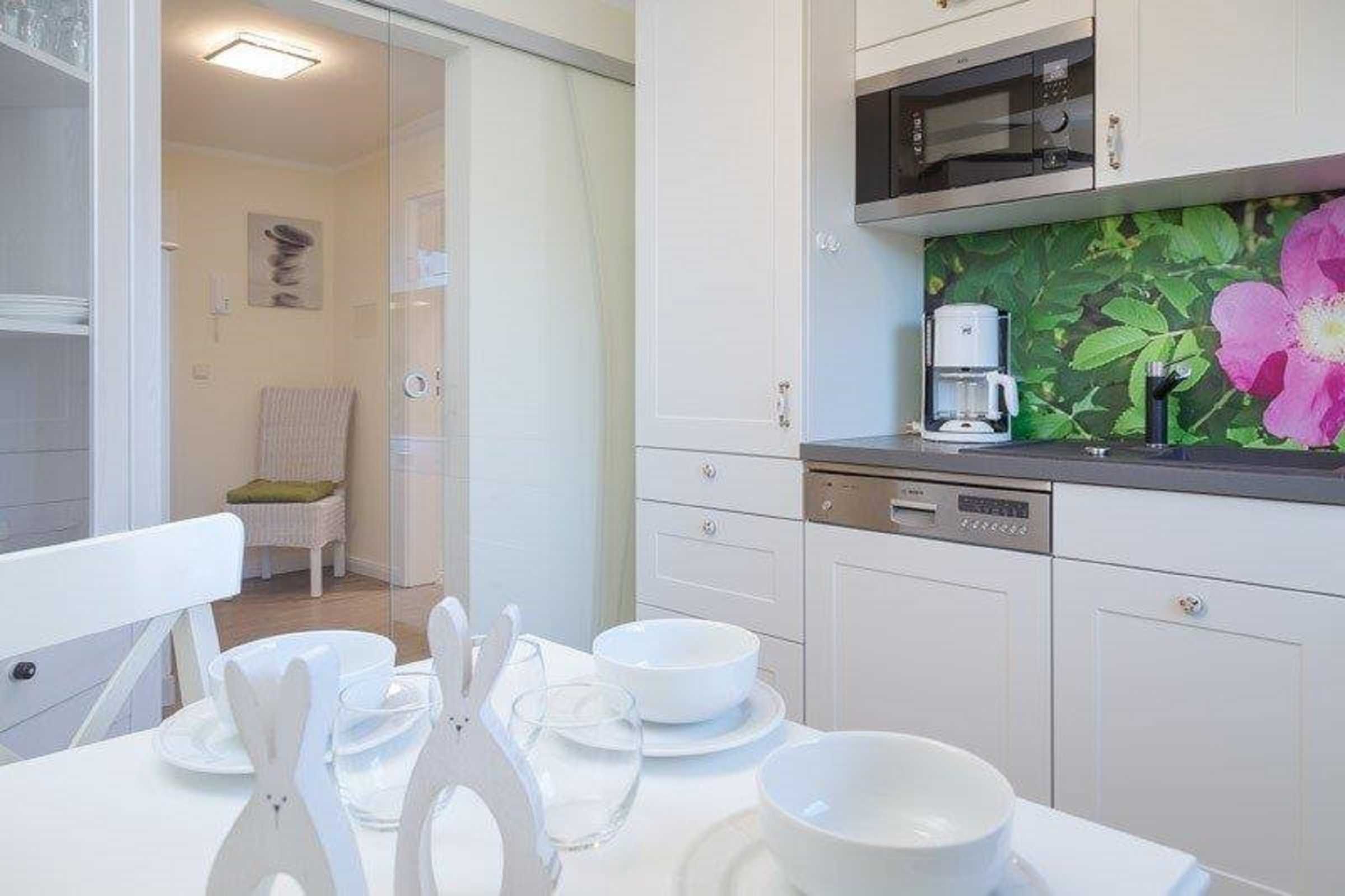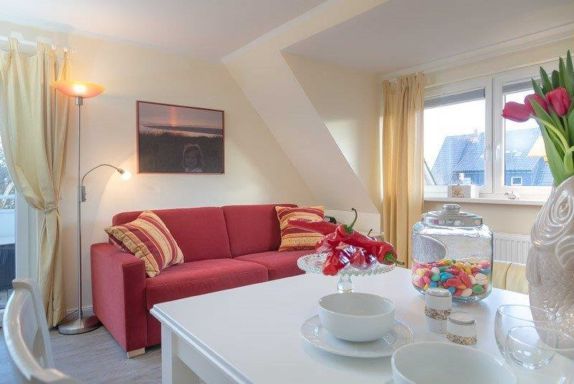 Ein Schlafzimmer mit 2 getrennten Einzelbetten, hochwertige Boxspringbetten (ganz leicht als Doppelbett zusammenzustellen) und ein freundliches und gemütliches Wohnzimmer mit grossem, ausziehbarem Esstisch und Flachbildschirm, DVD, Radio mit CD. W-Lan kostenfrei. Couch zum Umbau für 1-2 weitere Schlafmöglichkeiten. Grosser sonniger Ostbalkon mit Sitzgelegenheiten und einem Strandkorb. Fenster zum Süden mit Blick zu den Dünen und Sonne am Nachmittag. Neurenoviertes Duschbad mit Fenster, grosszügiger Flur und eine sehr gut ausgestattete Küche mit Spülmaschine, 4-Plattenherd, Kaffeemaschine, Nespressomaschine, Wasserkocher, Eierkocher und Microwelle mit Backofen und Fenster zum Balkon ( Durchreiche zum Frühstück in der Morgensonne ). Die Ferienwohnung Heiderose (ca. 50m²): für 4 Personen möglich, für 3 Personen gemütlich. Eigener Parkplatz direkt am Haus, Fahrradständer am Haus Obwohl zentral gelegen (3 Min. zur Friedrichstrasse und 3 Minuten zum Strand) absolut ruhige Lage in einer kleinen sehr gepflegten Wohneinheit. Wunderschöner ruhiger Balkon mit Blick ins Grüne. Zum Bahnhof 10 Min zu laufen.