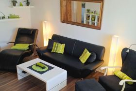 Die FERIENWOHNUNG 1 befindet sich im 2. OG des sehr ruhigen Hauses Gelbsand. Ein Aufzug hält auf halber Etage.