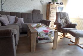 In der 80 qm großen Wohnung kann man im behaglichem Wohnbereich entspannen. Zur Unterhaltung gibt es ein Flachbildschirm-TV, ein DVD Player und ein Radio. Die Wohnküche läd zum gemütlichen Essen ein, und ist ausgestattet mit einem Backofen, Kühlschrank, Wasserkocher, Kaffeemaschine,Toaster, einer Geschirrspülmaschine und vielem mehr. Das Schlafzimmer besteht aus einem Doppelbett und einer Komode. Auch hier ist ein Flachbild- Fernseher vorhanden. Das zweite Schlafzimmer ist mit einem Einzelbett, einem Schreibtisch und einem Schrank ausgestattet. Desweiteren steht Ihnen ein Kinderbett und ein Hochstuhl zur Verfügung. Das Bad bietet eine Dusche, eine Badewanne, ein WC und ein Waschbecken. Zur Wohnung gehört auch eine schöne Terrasse mit vier Stühlen und einem Tisch sowie ein Parkplatz dirket am Haus. Ihre mitgebrachten Fahrräder können untergestellt werden. Ein Spielplatz ist fußläufig erreichbar.