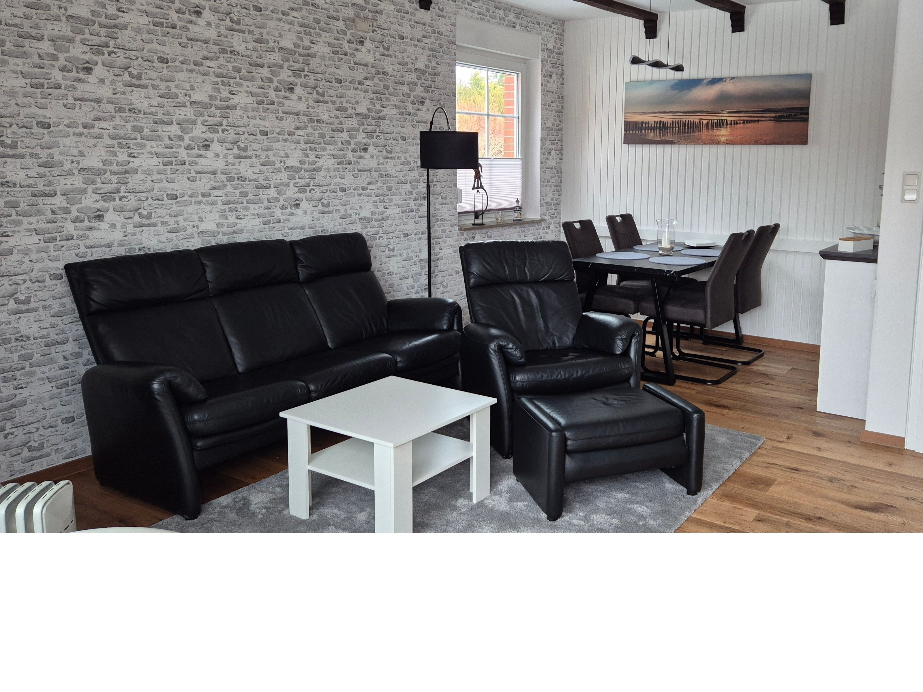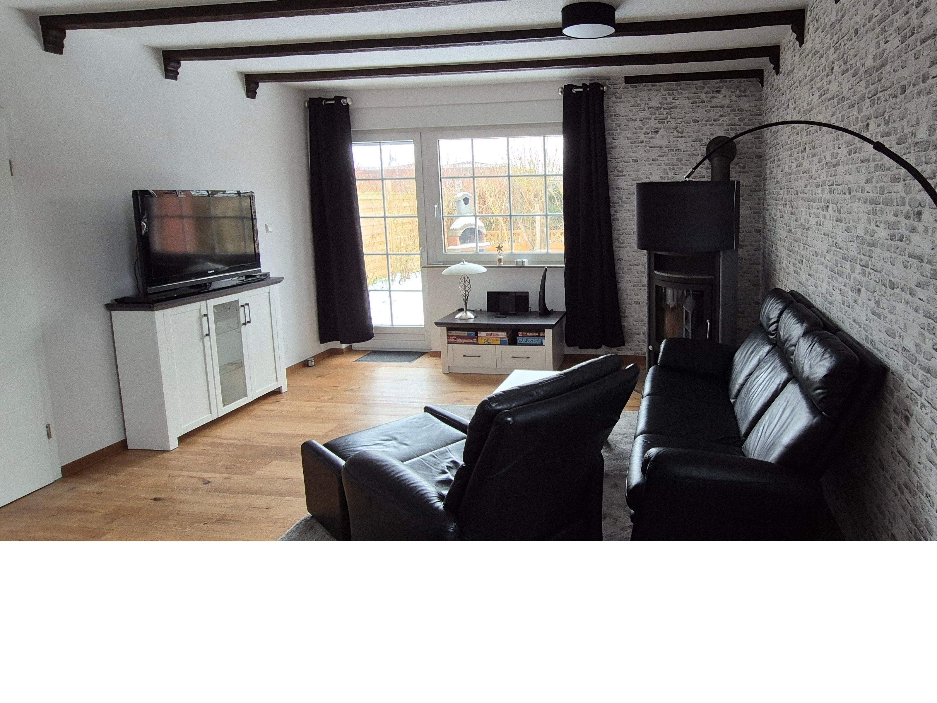 Wohn- Esszimmer mit gemütlicher Sitzecke vor dem Kamin /Ofen, Essplatz, Stereoanlage, Sat-Flachbild-Farbfernseher und Blu-Ray-Player, W-Lan. Für unsere Gäste halten wir einige Spiele, diverse DVD (auch für die Kleinen), Hörbücher und eine Reihe von Büchern bereit. 1. Schlafzimmer mit Doppelbett 140x200, Nachttisch, Kleiderschrank und Kommode. 2. Schlafzimmer mit Einzelbett 90x200, Nachttisch, Stehlampe, Sessel, Tisch und Kleiderschrank. Badezimmer mit Dusche Waschbecken und WC. Flur mit Garderobe und Bank. Separate Küche mit Einbauküche. Einbauküche mit Glaskeramik-Herd, Backofen, Geschirrspülmaschine, Kühlschrank, Tiefkühlfach, Mikrowelle, Toaster, Wasserkocher, Filter-Kaffeemaschine für gemahlenen Kaffee, Kaffee-Padmaschine, Waschmaschine, sowie alle notwendigen Küchenutensilien.