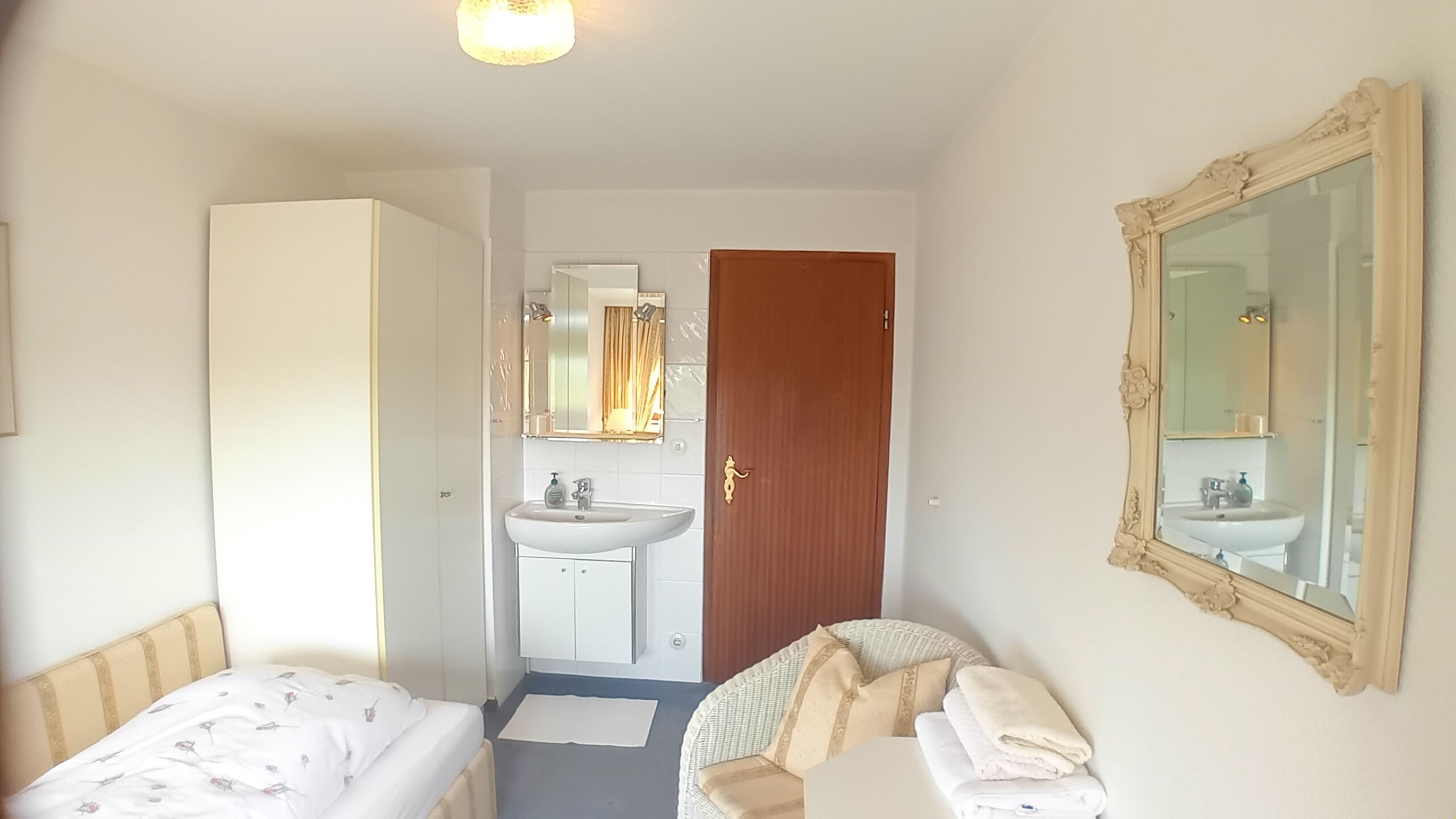Einzelzimmer im 1.OG mit wundervollem Weitblick über die Salzwiesen von Südwesterland bis zu den Dünen. Das Zimmer verfügt über ein Kleiderschrank, Stuhl und Tisch, Flachbild TV sowie ein eigenes Waschbecken. Das Badezimmer mit Dusche und WC befindet sich direkt gegenüber, Sie nutzen es mit einer weiteren Person aus dem 2. Einzelzimmer.