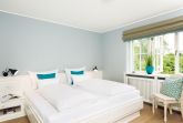 Hier präsentiert sich ein tolles Einzelhaus mit großem Garten und einem Mix aus modernen und antiken Möbeln. Sie gelangen schnell nach Kampen down town, genießen Sie die zentrale und trotzdem ruhige Lage in einer Stichstraße. Das Haus Min Go besitzt Seele und bietet viele charmante Details. Es empfängt Sie in der geräumigen Diele mit offenem Zugang zur hochmodernen Küche. Naturstein- und Holzfußböden finden Sie in allen Zimmern. Das helle Wohnzimmer mit großen Fenstern hat reichlich Platz. Speisen Sie in der Essecke mit direktem Zugang zur überdachten Südterrasse. Auf dieser Ebene finden Sie außerdem ein Doppelschlafzimmer mit Duschbad. Auf halber Treppe liegt das Gäste-WC. Im Obergeschoss ist viel Platz für Familie und Freunde: Neben einem kleinen Arbeitsplatz auf der Galerie lassen ein Doppelschlafzimmer mit TV und Duschecke, ein Wannenbad, ein behagliches Einzelzimmer und ein weiteres großzügiges Doppelschlafzimmer mit TV keine Wünsche offen.