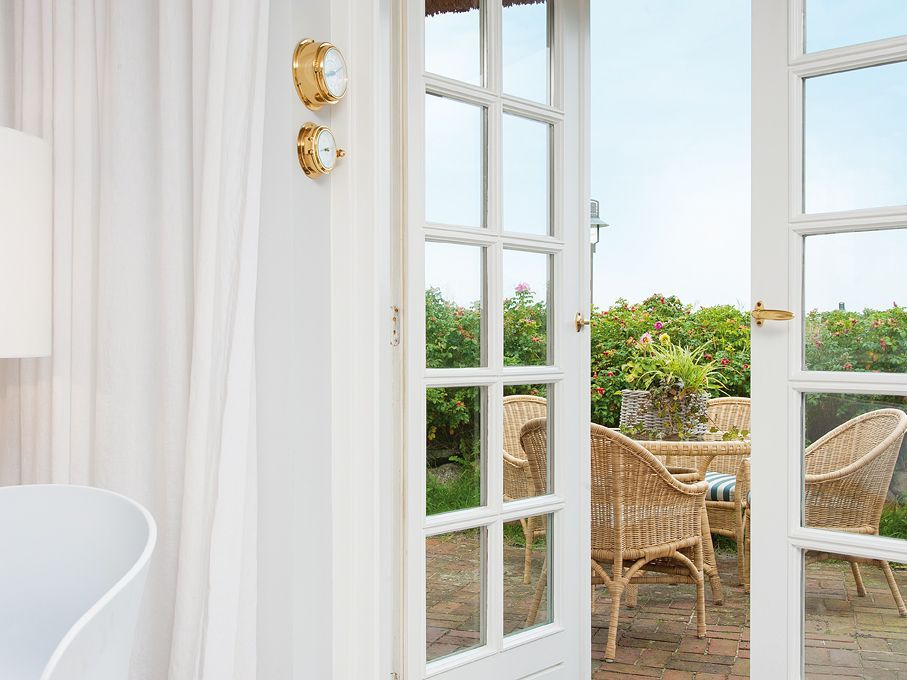Diese schmucke Ferienwohnung unter Reet verwöhnt mit Weitblick auf Heide, Nordsee und Wattenmeer. Entsprechend kurz ist der Weg an den wunderschön weißen Sandstrand von Kampen unweit der berühmten Sturmhaube. Das Erdgeschoss besticht durch die breiten Holzdielen im geräumigen Wohn- Esszimmer mit Kachelofen und eine liebevolle Hand bei der Dekoration. Die Terrasse mit Meerblick, die offene Einbauküche in puristischem Design und das Gäste-WC machen das Erdgeschoss komplett. Zwei behaglich eingerichtete Doppelschlafzimmer im Untergeschoss bieten Platz zum Träumen, außerdem finden Sie auf dieser Etage ein zeitlos stilvolles Badezimmer mit Wanne und Dusche.
