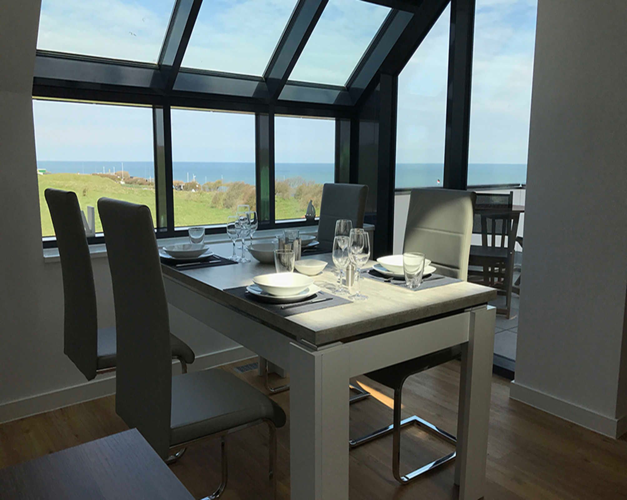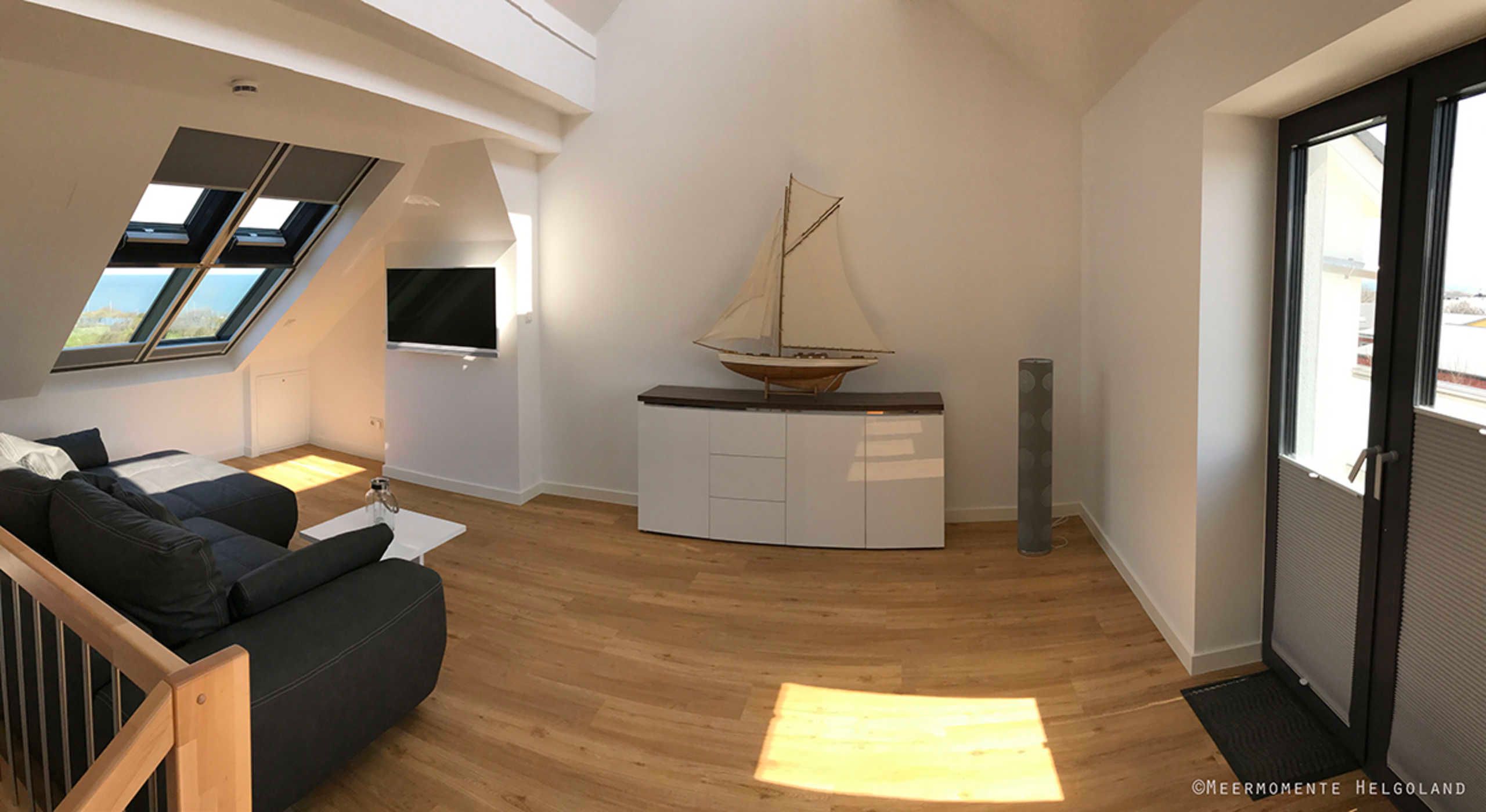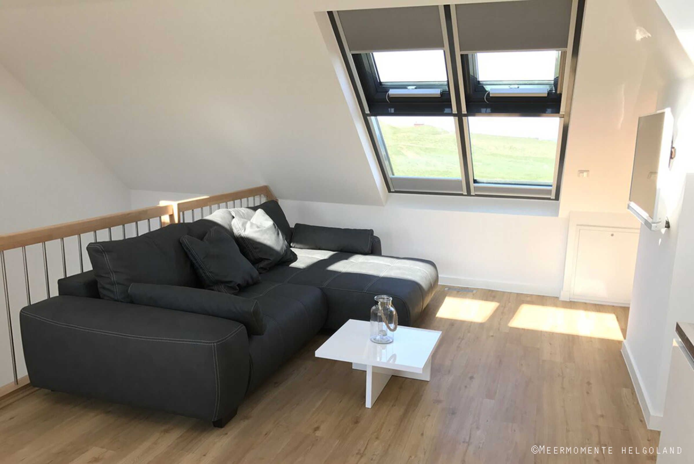 Die luxuriöse Wohnung hat ca. 70 qm Wohnfläche und verfügt in der unteren Etage über eine komplett ausgestattete Küche mit Geschirrspüler und Zugang zum Balkon, einen großzügigen Essbereich und Blick aus Meer und ins Grüne. Bad mit Dusche und WC, Schlafzimmer mit einem komfortablen Doppelbett. Im Studio in der oberen Ebene befindet sich ein Wohn/Schlafbereich mit Blick auf die Nordsee durch das Panoramadachfenster und Zugang zur Dachterrasse mit Blick auf den Leuchtturm und die Düne. WLAN, TV und Radio/Dockingstation sehen zur Verfügung. Bettwäsche und Handtücher sind inklusive und werden bei längeren Aufenthalten gewechselt.