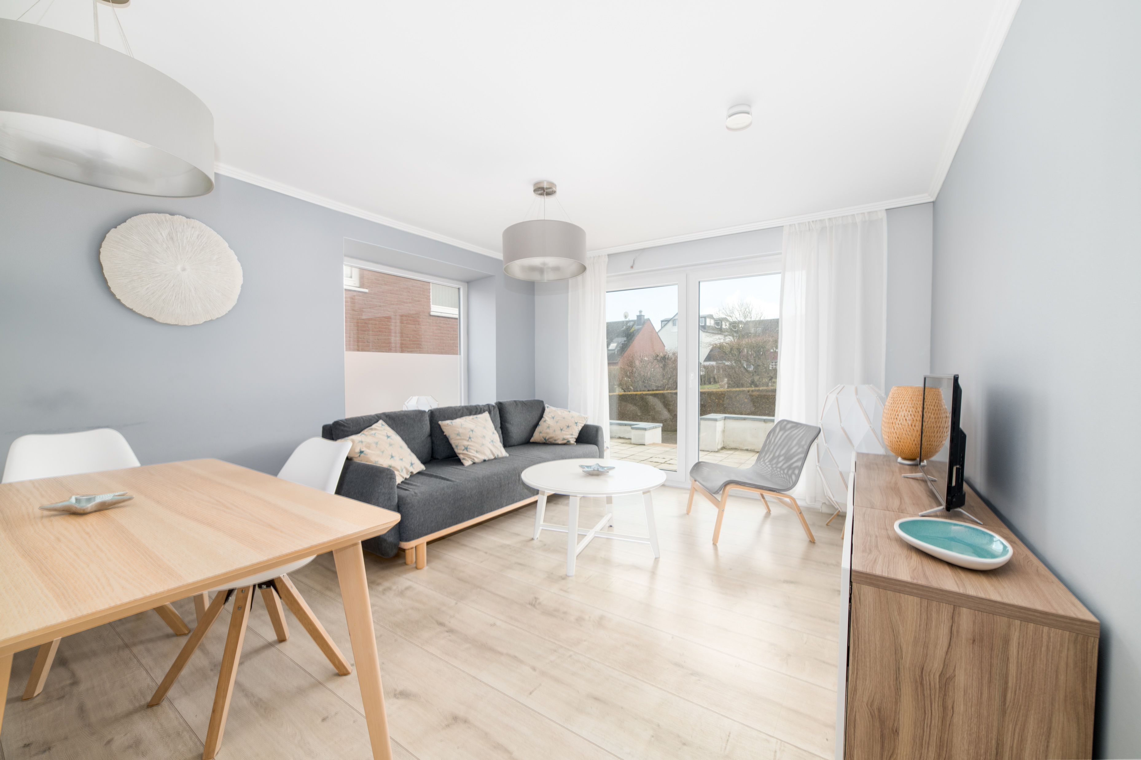 Unsere Ferienwohnungen sind perfekt für Familien oder Gruppen von Freunden geeignet. Zwei der Wohnungen verfügen über jeweils zwei Schlafzimmer und ein komfortables Schlafsofa im Wohnzimmer, sodass bis zu vier Erwachsene bequem übernachten können. Jedes Zimmer ist mit einem eigenen Fernseher ausgestattet, damit Sie sich nach einem Tag voller Aktivitäten auf der Insel entspannen und Ihren Lieblingsfilm oder -serie gucken können. Wir haben auch kostenloses WLAN, damit Sie jederzeit mit Ihren Lieben zu Hause in Kontakt bleiben können.