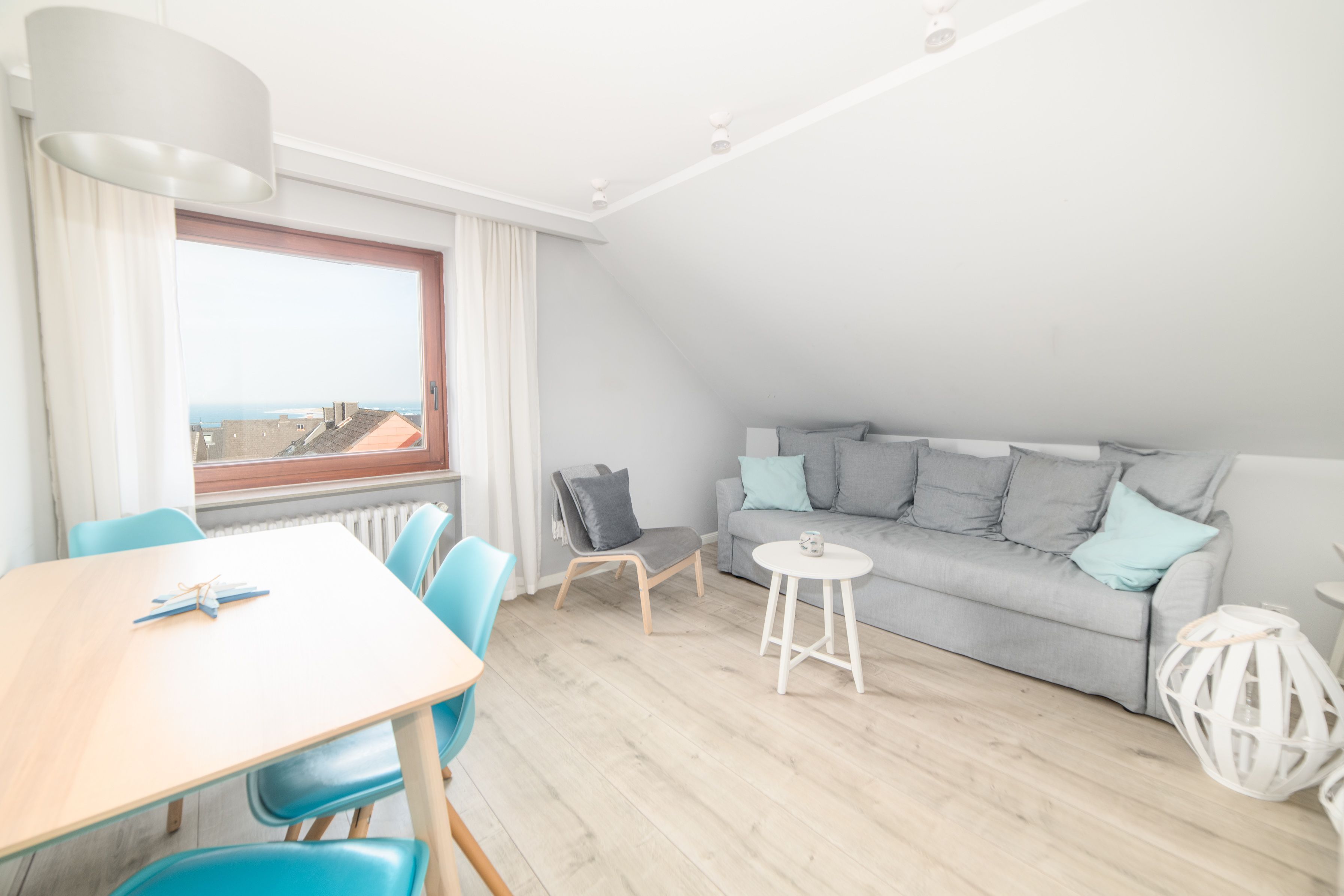 Zusätzlich bietet die Ferienwohnung Meerblick über den Dächern der anderen Häuser.