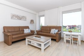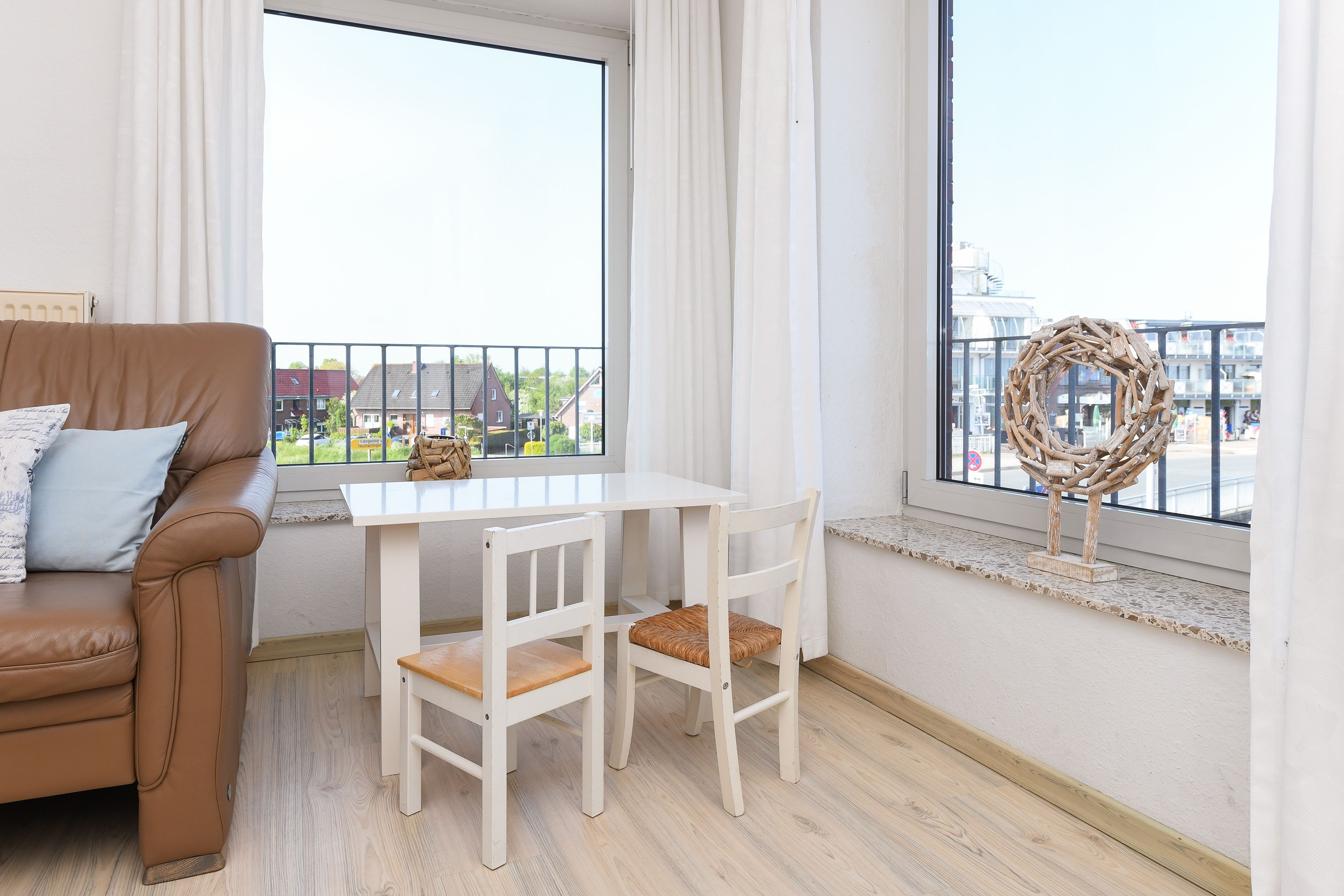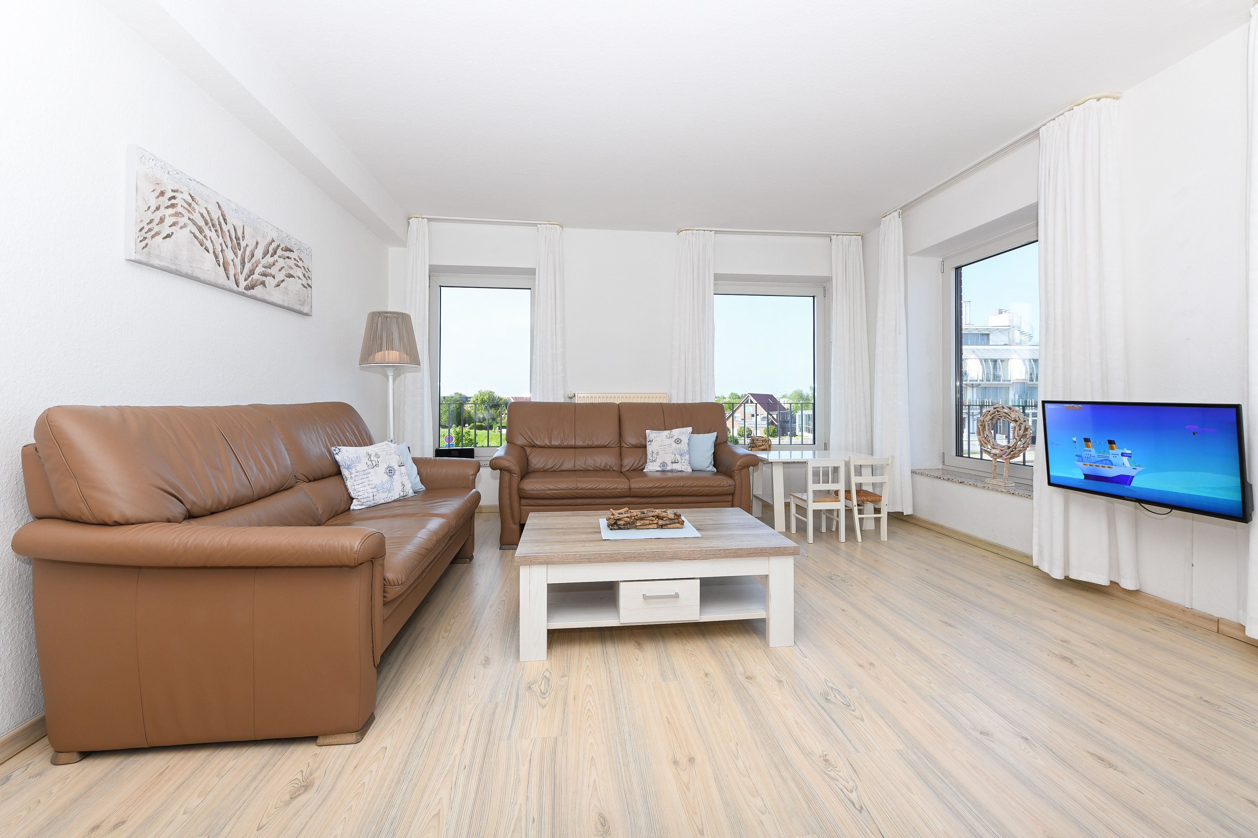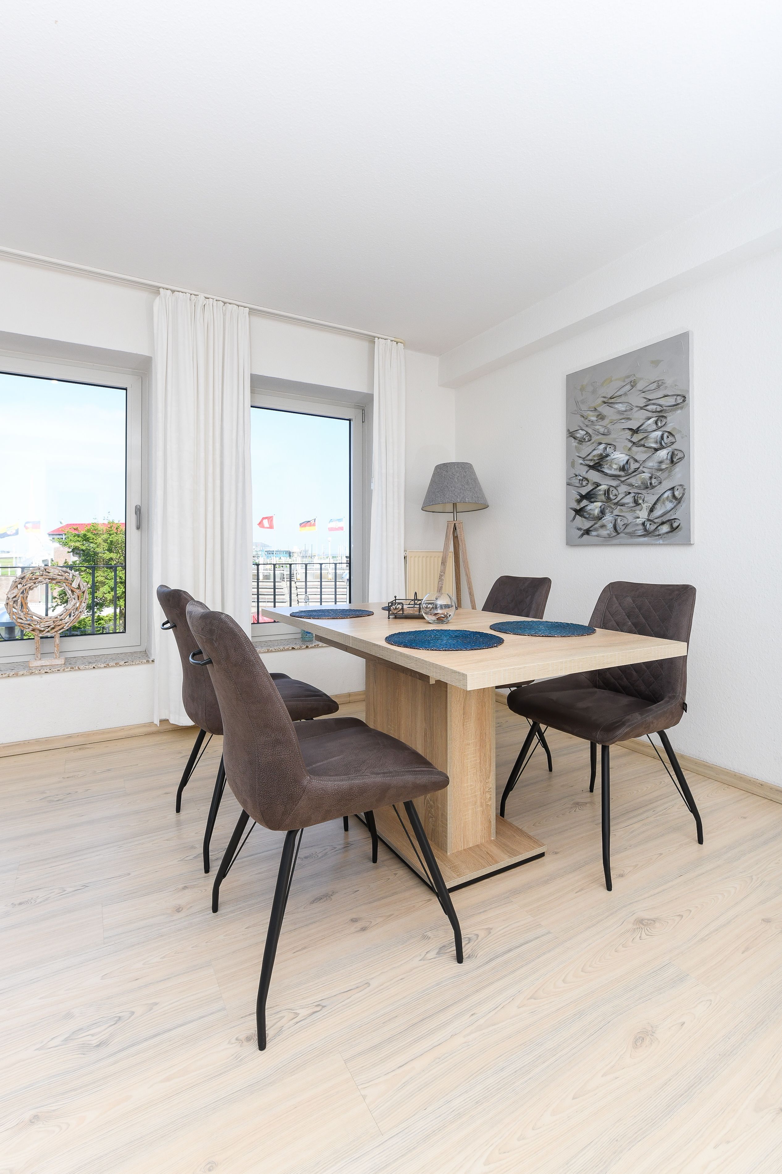 Von der Wohnung „Backbord“ aus haben Sie einen herrlichen Blick auf den Hafen, die Nordsee und das Nordseeheilbad Bensersiel.