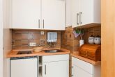Die Ferienwohnung „Herzmuschel“ ist gemütlich und komfortabel eingerichtet und ausgestattet und verfügt über eine hochgesetzte Terrasse, einen Wohnraum mit integrierter Küche, ein Schlafzimmer und ein Badezimmer mit Dusche, Waschtisch und WC. Die Wohnung ist ca. 35 Quadratmeter groß, sehr preiswert und ideal für Paare und auch für Singles geeignet.