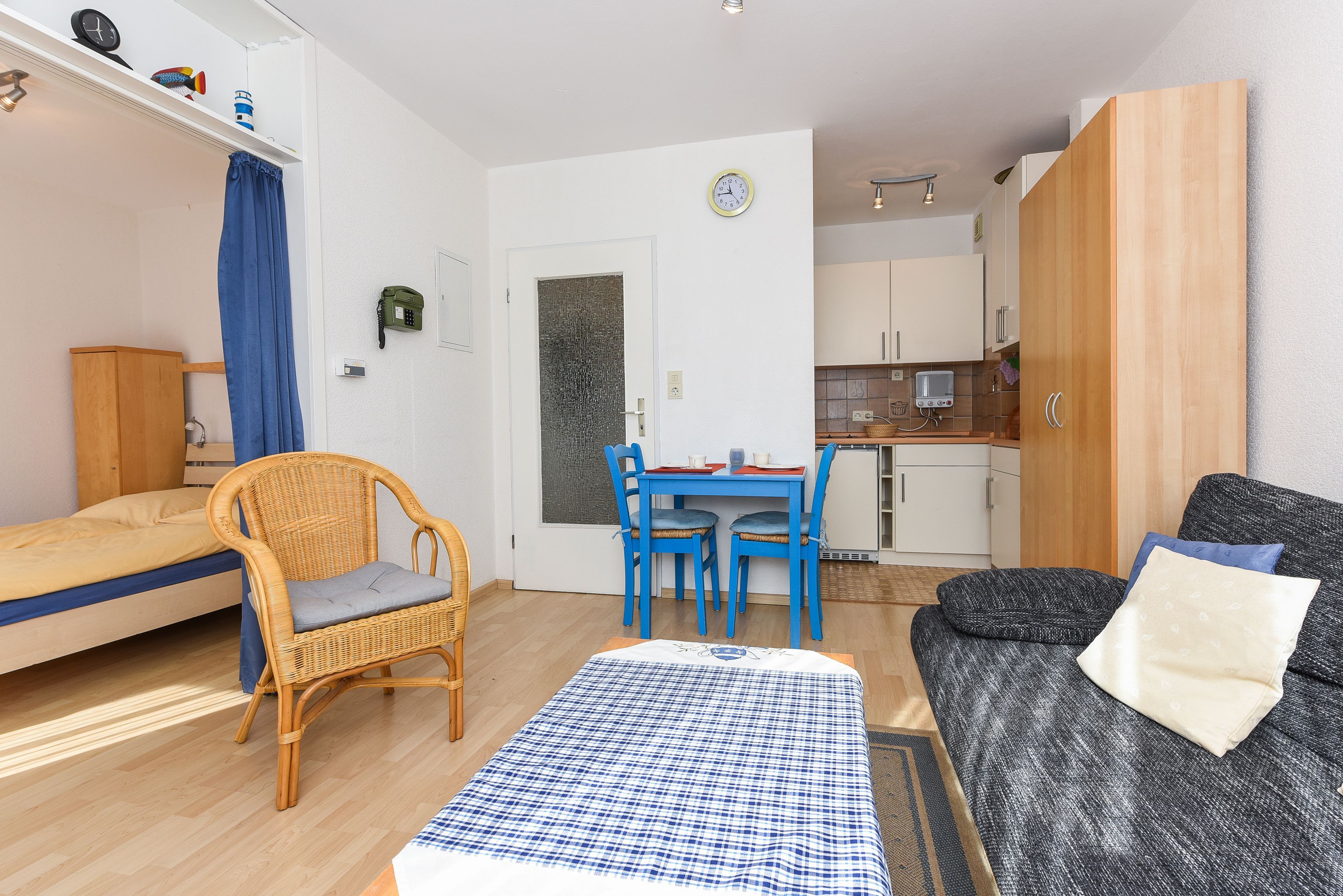 Wohnraum mit integrierter Küche und mit zusätzlicher Schlafmöglichkeit