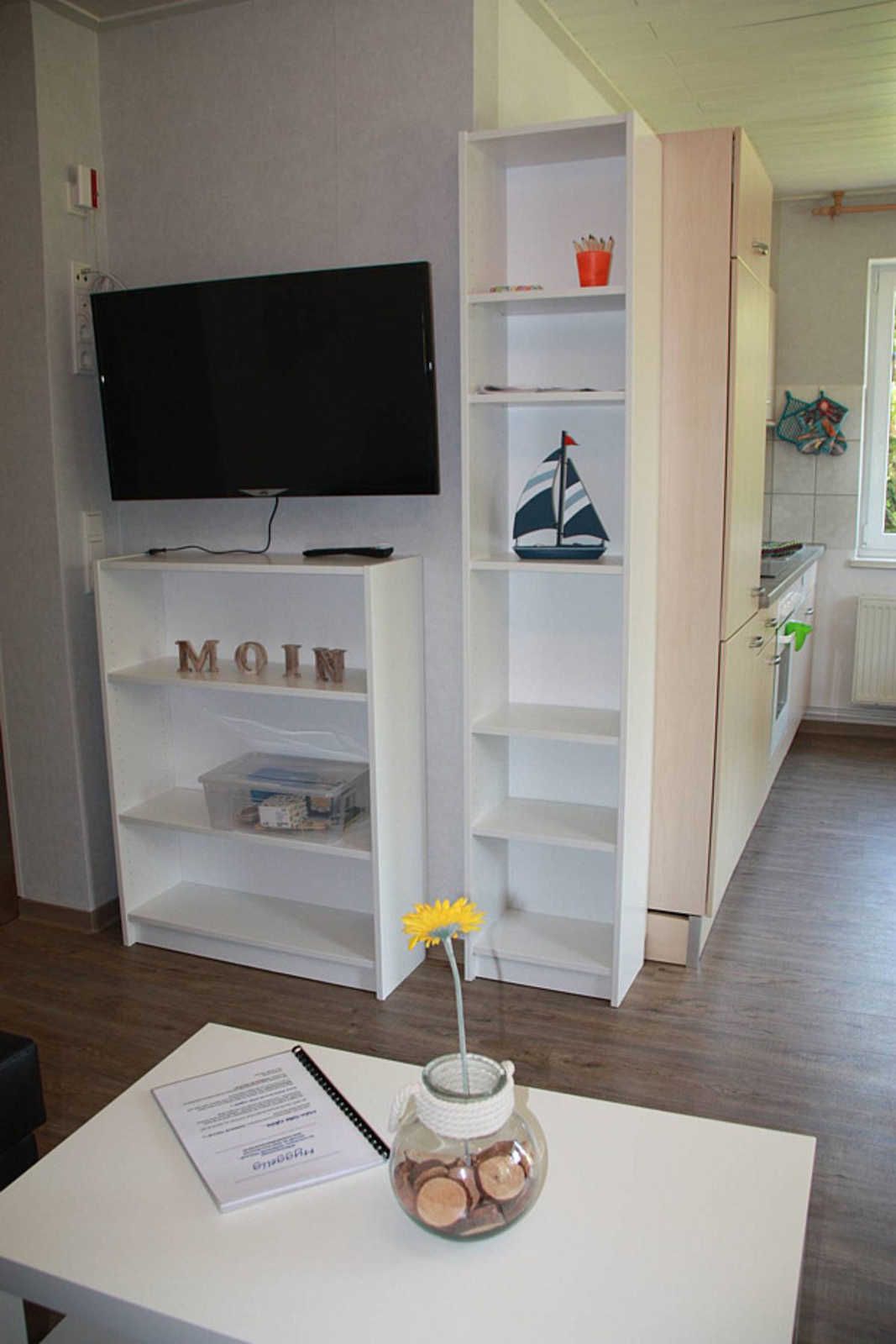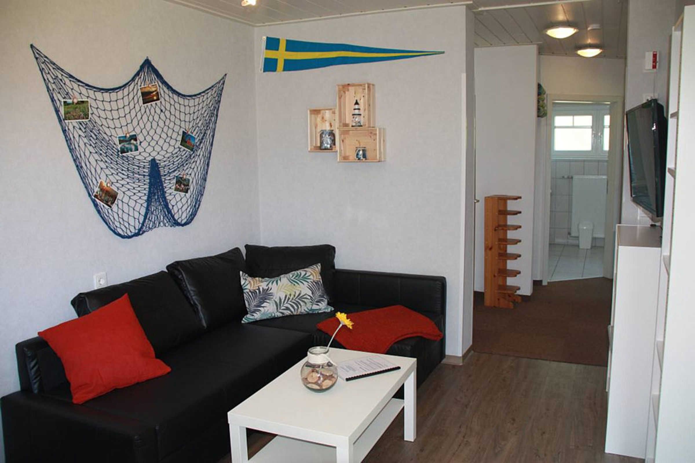 Die fünfte Wohnung heißt „Island“ und ist ganz oben im Haus untergebracht, so dass ein Blick über den Deich auf die Nordsee und die vorgelagerten Inseln möglich ist. Diese Wohnung „Island“, geeignet für 1 bis 2 Personen nebst zusätzlichem Kleinkind, verfügt über einen Wohnraum mit integrierter vollständiger Küche, ein Schlafzimmer sowie ein Badezimmer mit Dusche, Waschtisch und WC.
