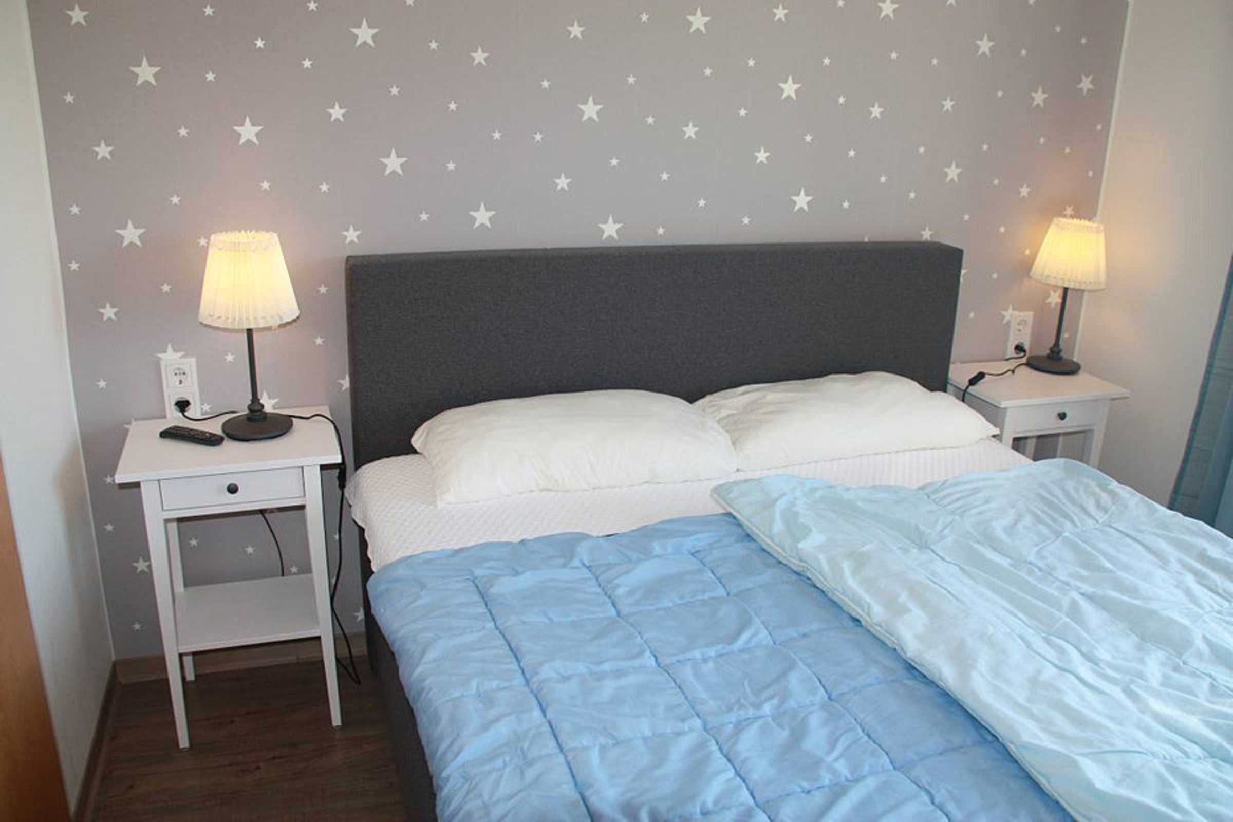 Die fünfte Wohnung heißt „Island“ und ist ganz oben im Haus untergebracht, so dass ein Blick über den Deich auf die Nordsee und die vorgelagerten Inseln möglich ist. Diese Wohnung „Island“, geeignet für 1 bis 2 Personen nebst zusätzlichem Kleinkind, verfügt über einen Wohnraum mit integrierter vollständiger Küche, ein Schlafzimmer sowie ein Badezimmer mit Dusche, Waschtisch und WC.