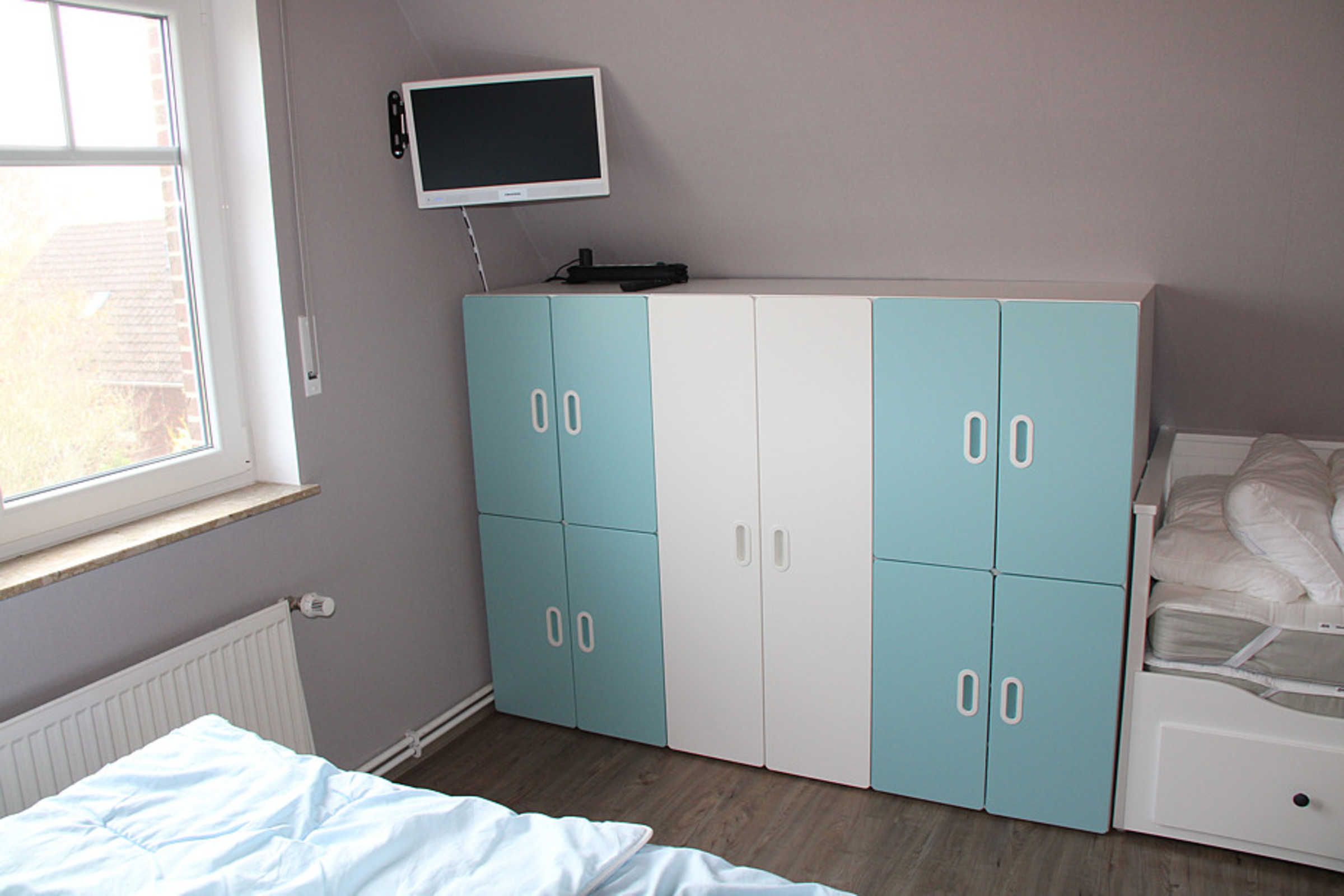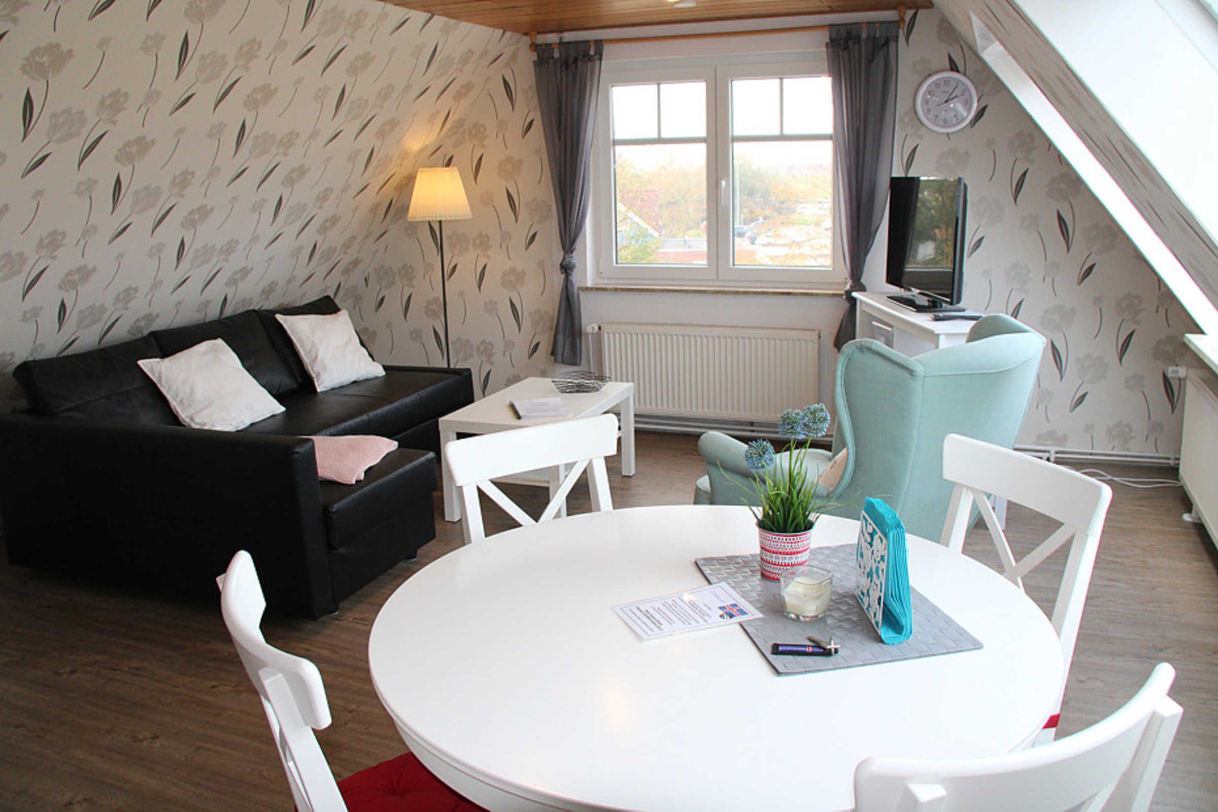 Die fünfte Wohnung heißt „Island“ und ist ganz oben im Haus untergebracht, so dass ein Blick über den Deich auf die Nordsee und die vorgelagerten Inseln möglich ist. Diese Wohnung „Island“, geeignet für 1 bis 2 Personen nebst zusätzlichem Kleinkind, verfügt über einen Wohnraum mit integrierter vollständiger Küche, ein Schlafzimmer sowie ein Badezimmer mit Dusche, Waschtisch und WC.