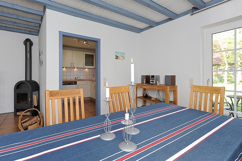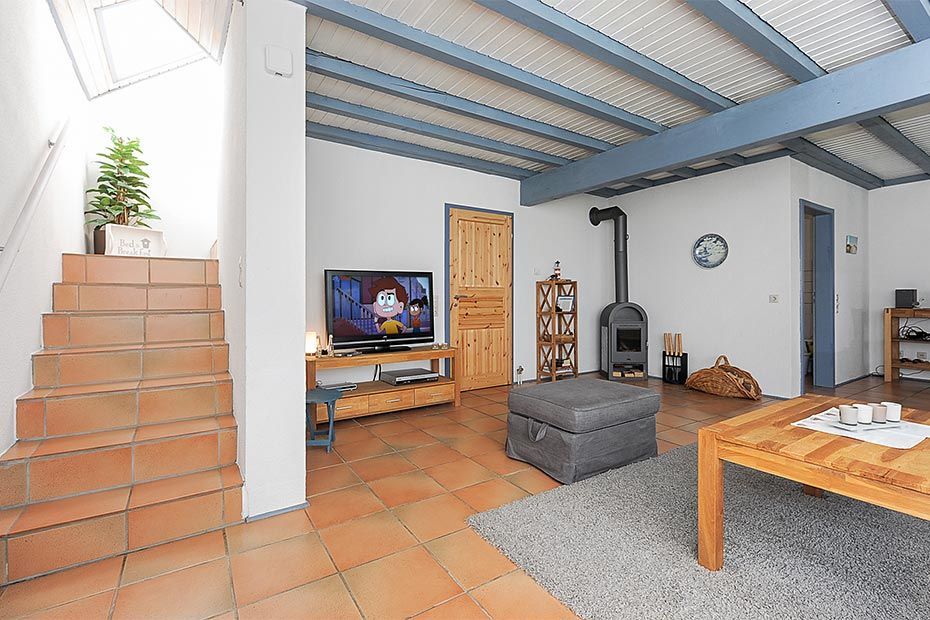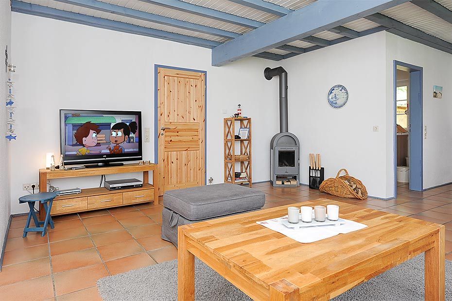 Das Ferienhaus „Huus Tide“ ist ungefähr 90 Quadratmeter groß und so für 2 bis 4 Personen nebst zusätzlichem Kleinkind bestens geeignet. Das Ferienhaus ist sehr gemütlich und großzügig gestaltet, mit freier Deckenbalkenlage und es gibt auch einen Kamin. Die Einrichtung ist sehr komfortabel und das Ferienhaus ist ausgestattet mit allem, was Sie in Ihrem Urlaub benötigen werden. An der Rückseite des Hauses liegt eine große möblierte Terrasse mit Blick in den Garten und auf die Wiesen und Felder der ostfriesischen Marsch.