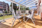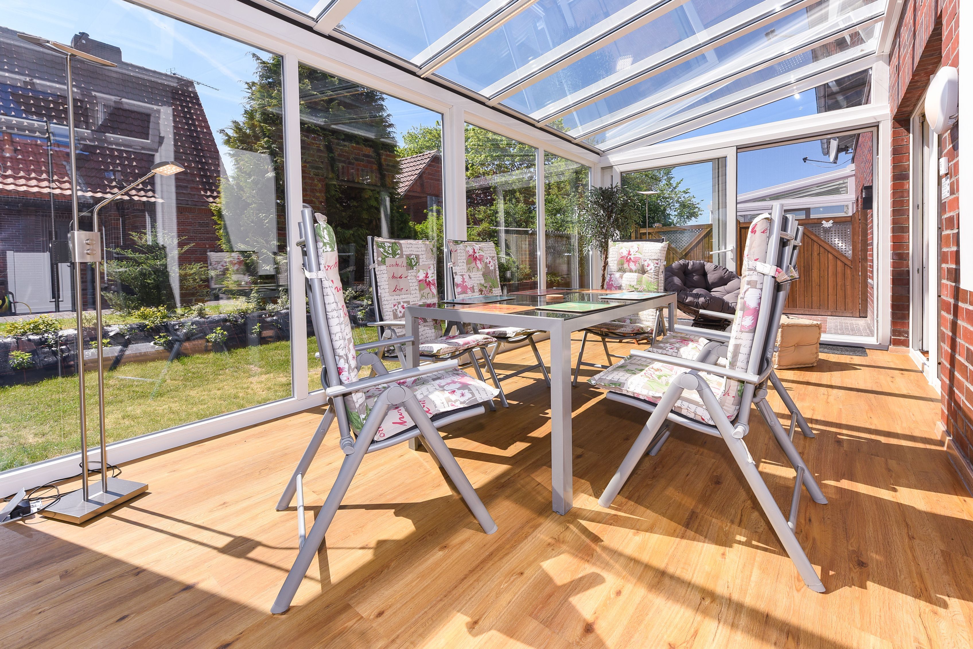 In der Angabe zur Größe der Wohnung ist der 24 Quadratmeter große Wintergarten enthalten, ebenfalls sind die beiden Terrassen zur Hälfte ihrer Größe berücksichtigt.