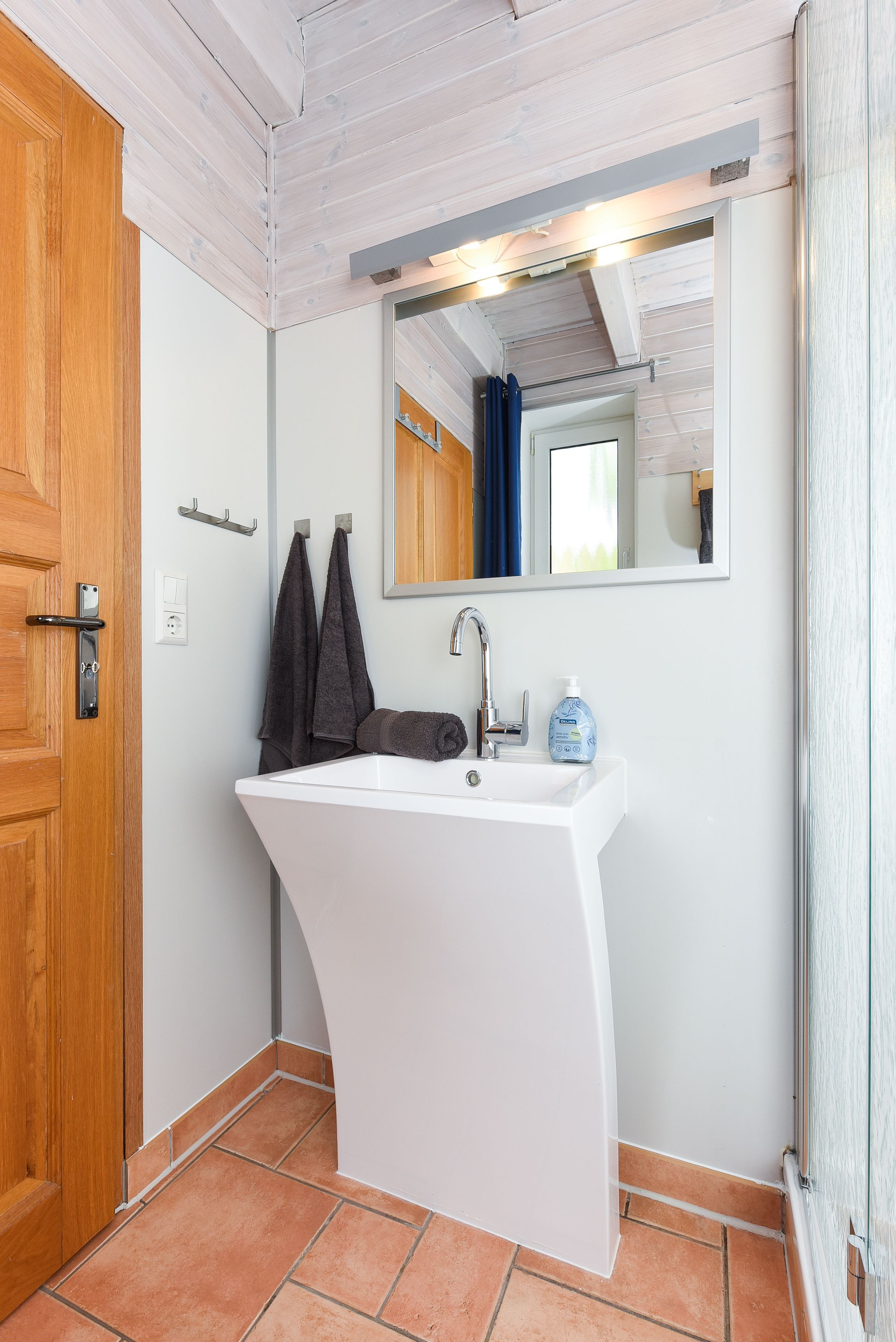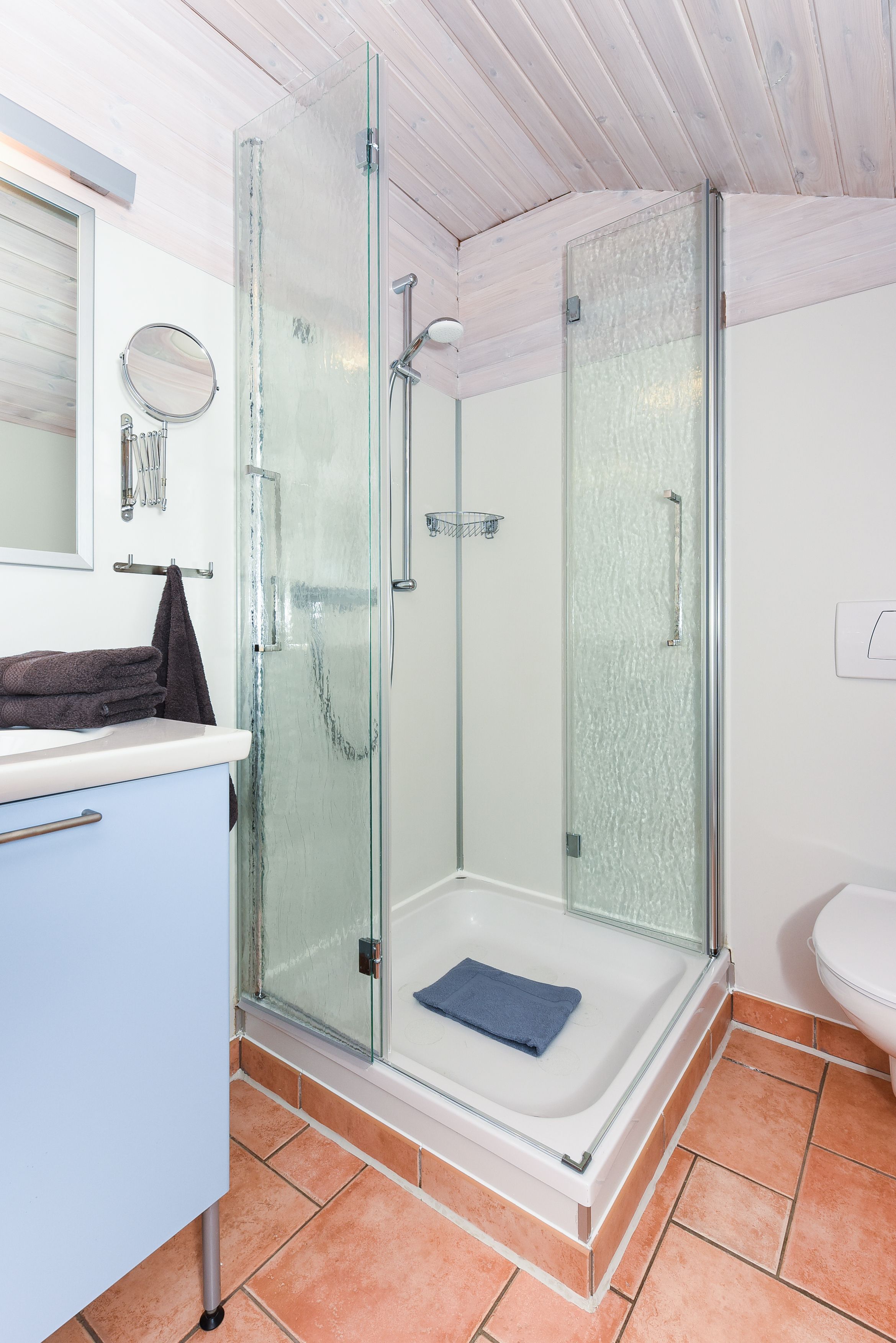 zweites Badezimmer mit Dusche, Waschtisch und WC
