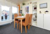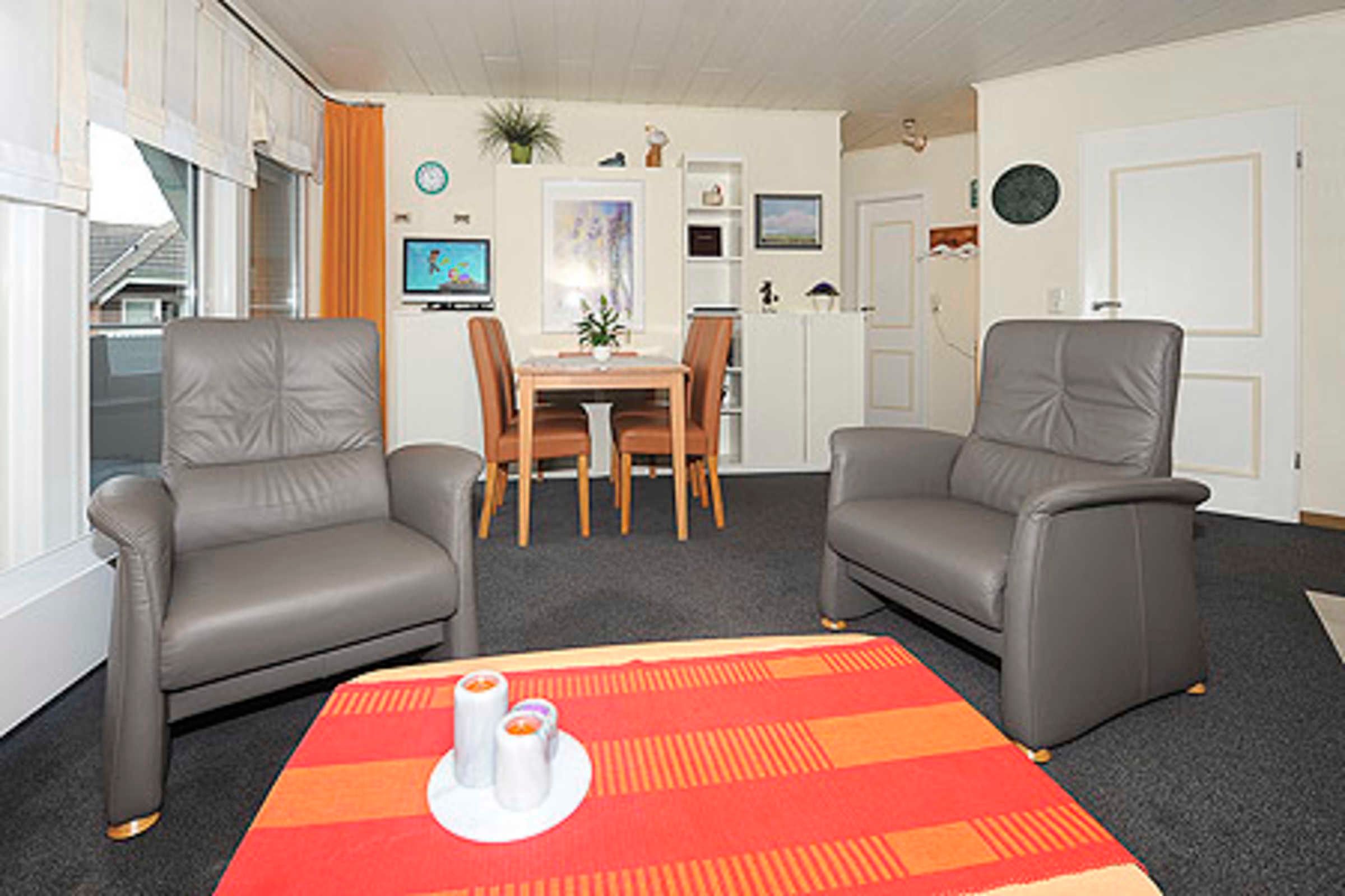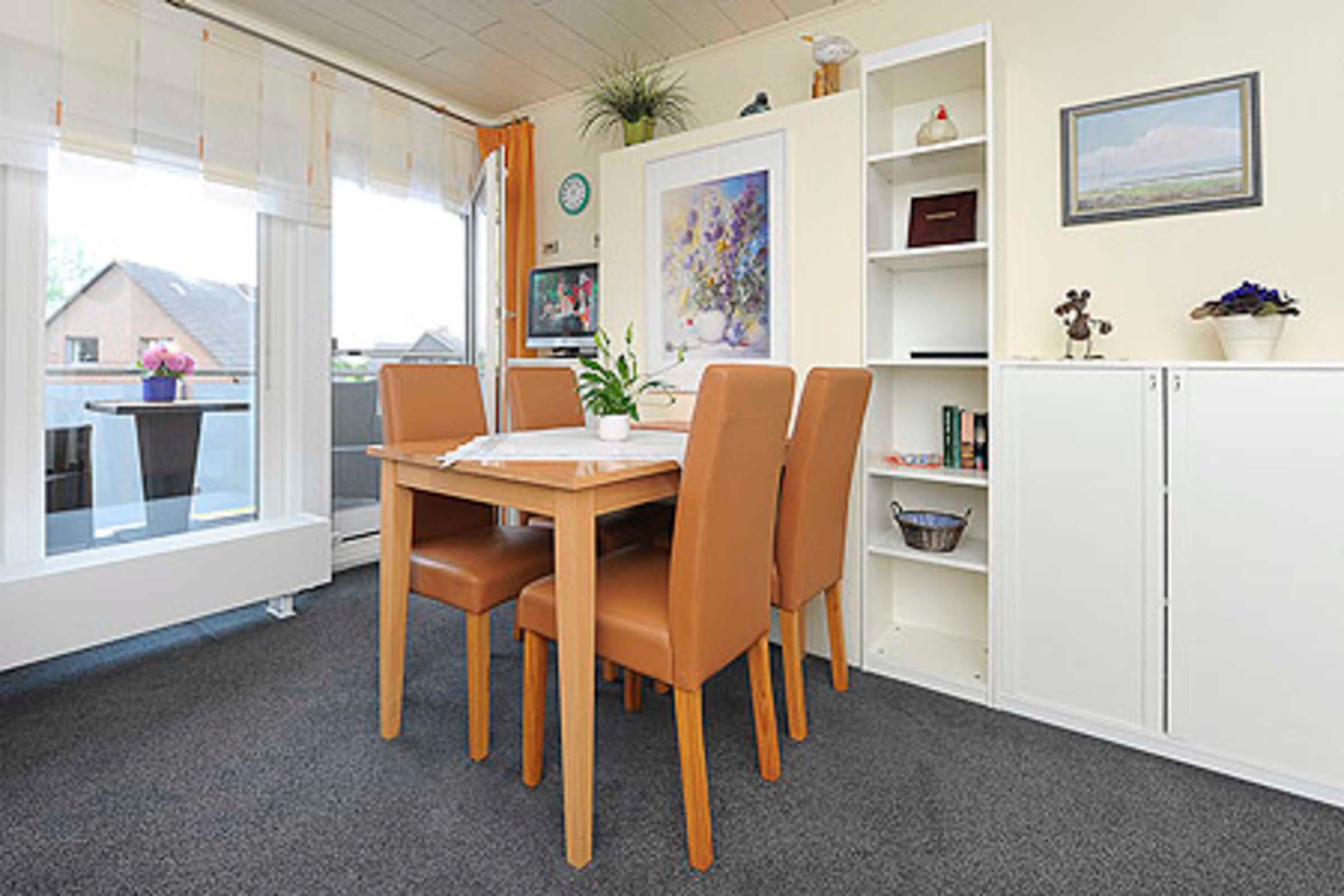 Die geschmackvollen und gemütlichen Ferienwohnungen sind jeweils ungefähr 50 Quadratmeter groß und für einen schönen Nordseeurlaub für zwei bis vier Personen bestens geeignet. Sie ist sehr freundlich gestaltet sowie sehr komfortabel ausgestattet und eingerichtet. Sie finden hier alles, was Sie für einen rundum schönen Urlaub benötigen, z. B. verfügen alle drei Ferienwohnungen über einen möblierten Balkon bzw. eine über eine Dachterrasse mit schönen Gartenmöbeln.