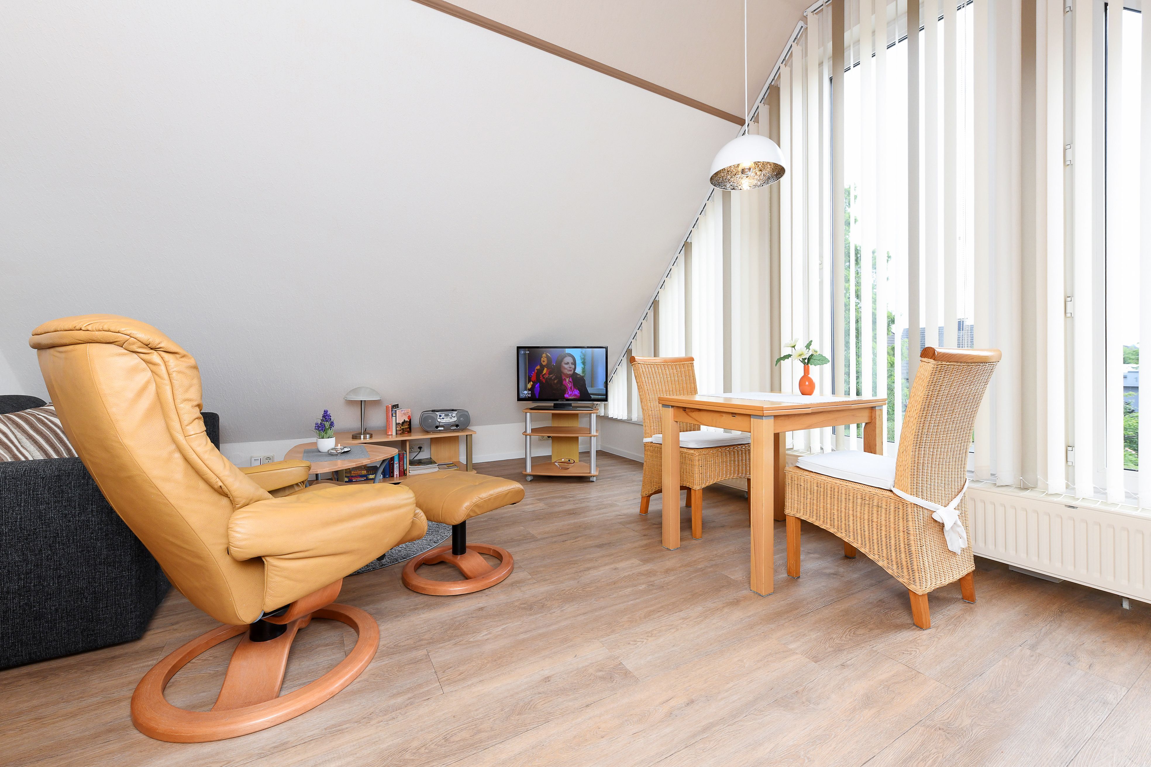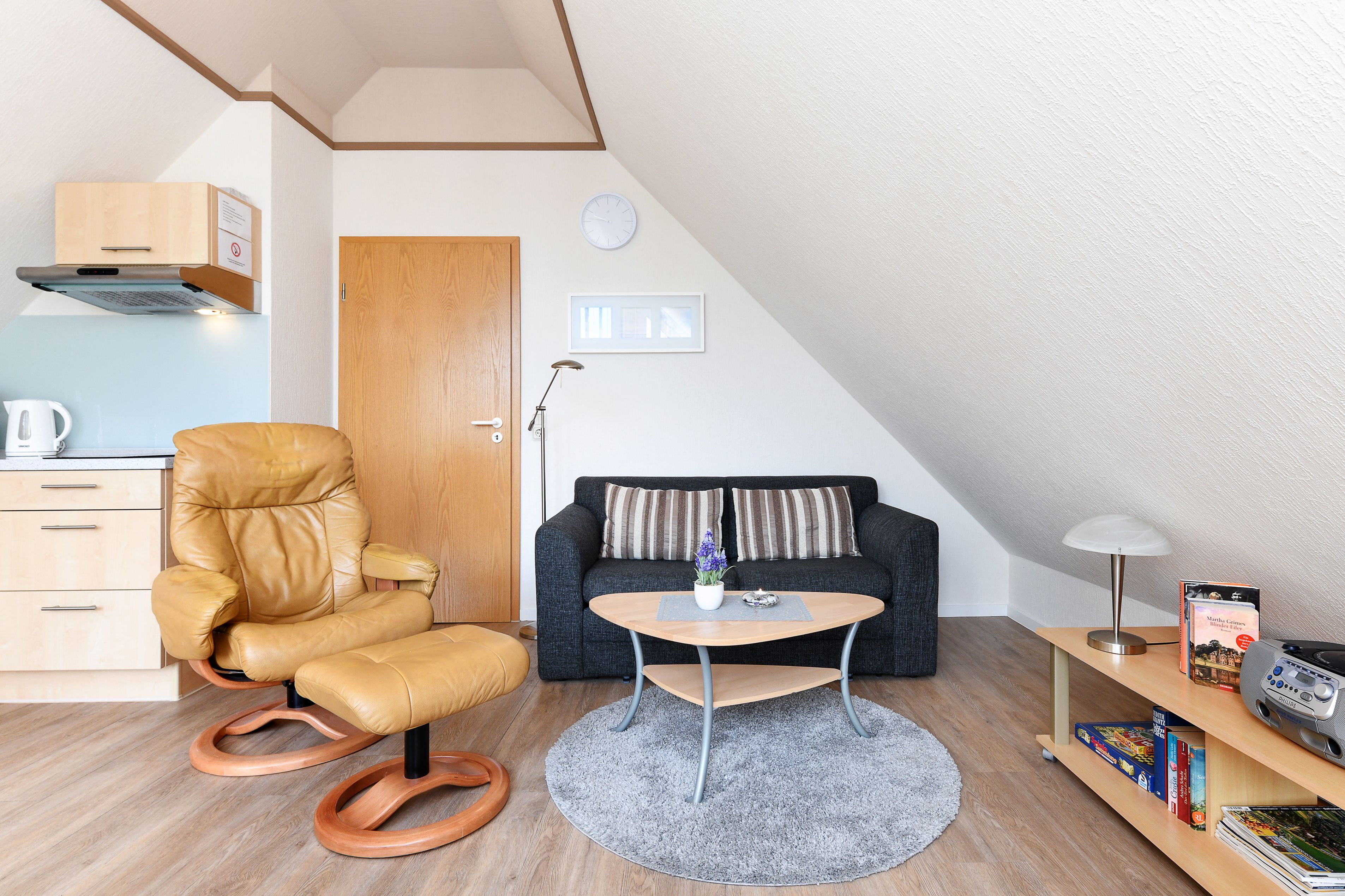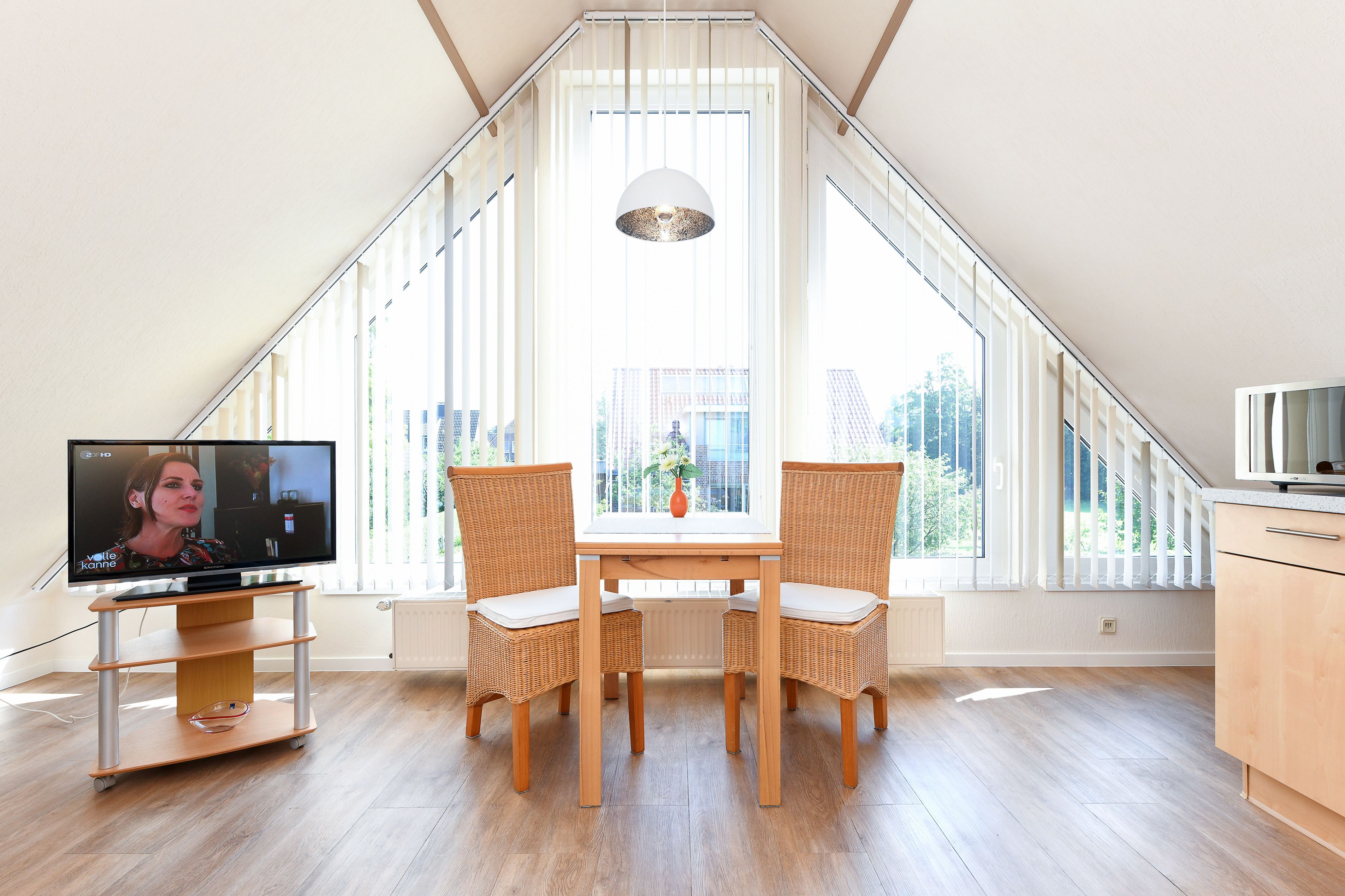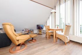 Die geschmackvollen und gemütlichen Ferienwohnungen sind jeweils ungefähr 50 Quadratmeter groß und für einen schönen Nordseeurlaub für zwei bis vier Personen bestens geeignet. Sie ist sehr freundlich gestaltet sowie sehr komfortabel ausgestattet und eingerichtet. Sie finden hier alles, was Sie für einen rundum schönen Urlaub benötigen, z. B. verfügen alle drei Ferienwohnungen über einen möblierten Balkon bzw. eine über eine Dachterrasse mit schönen Gartenmöbeln.