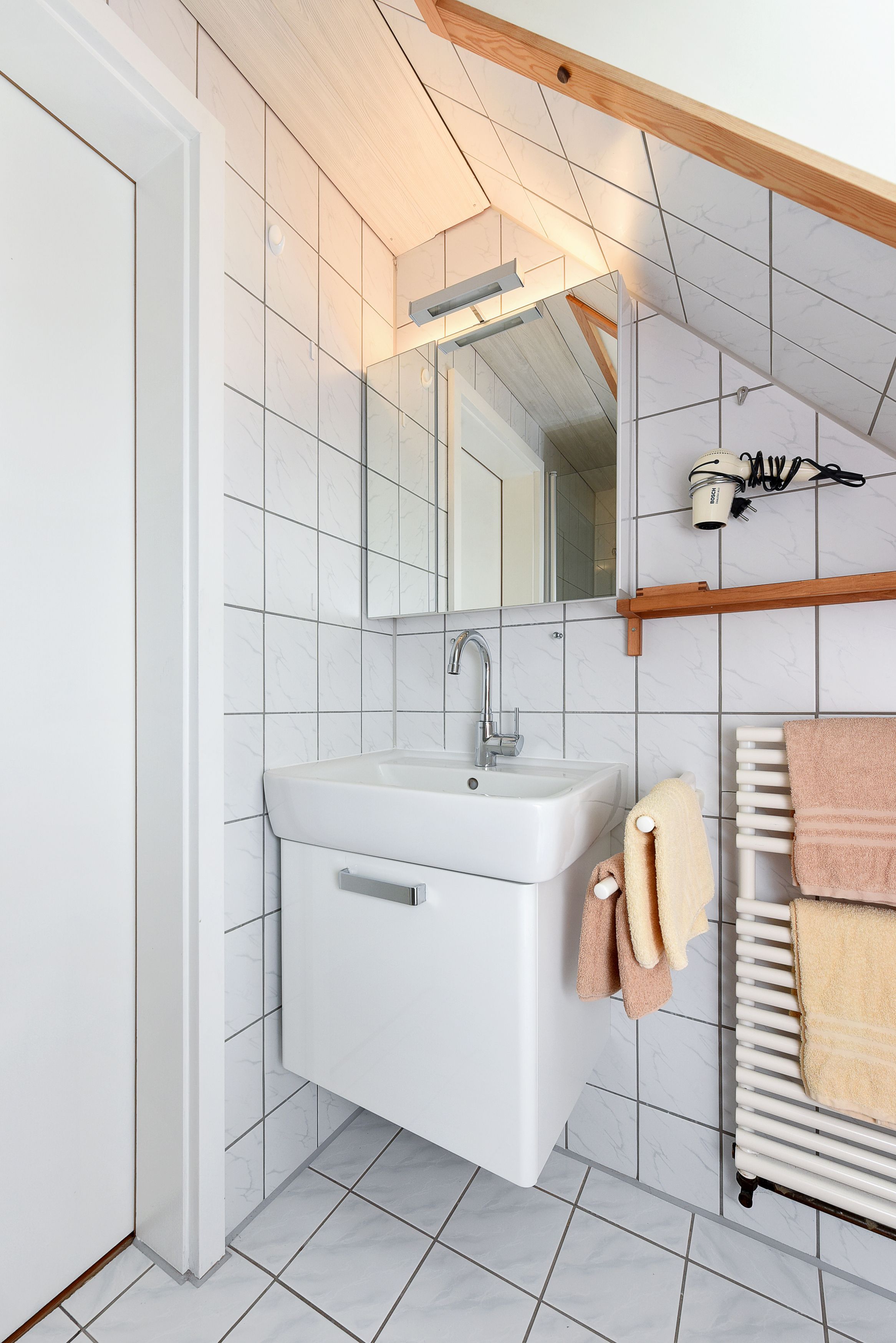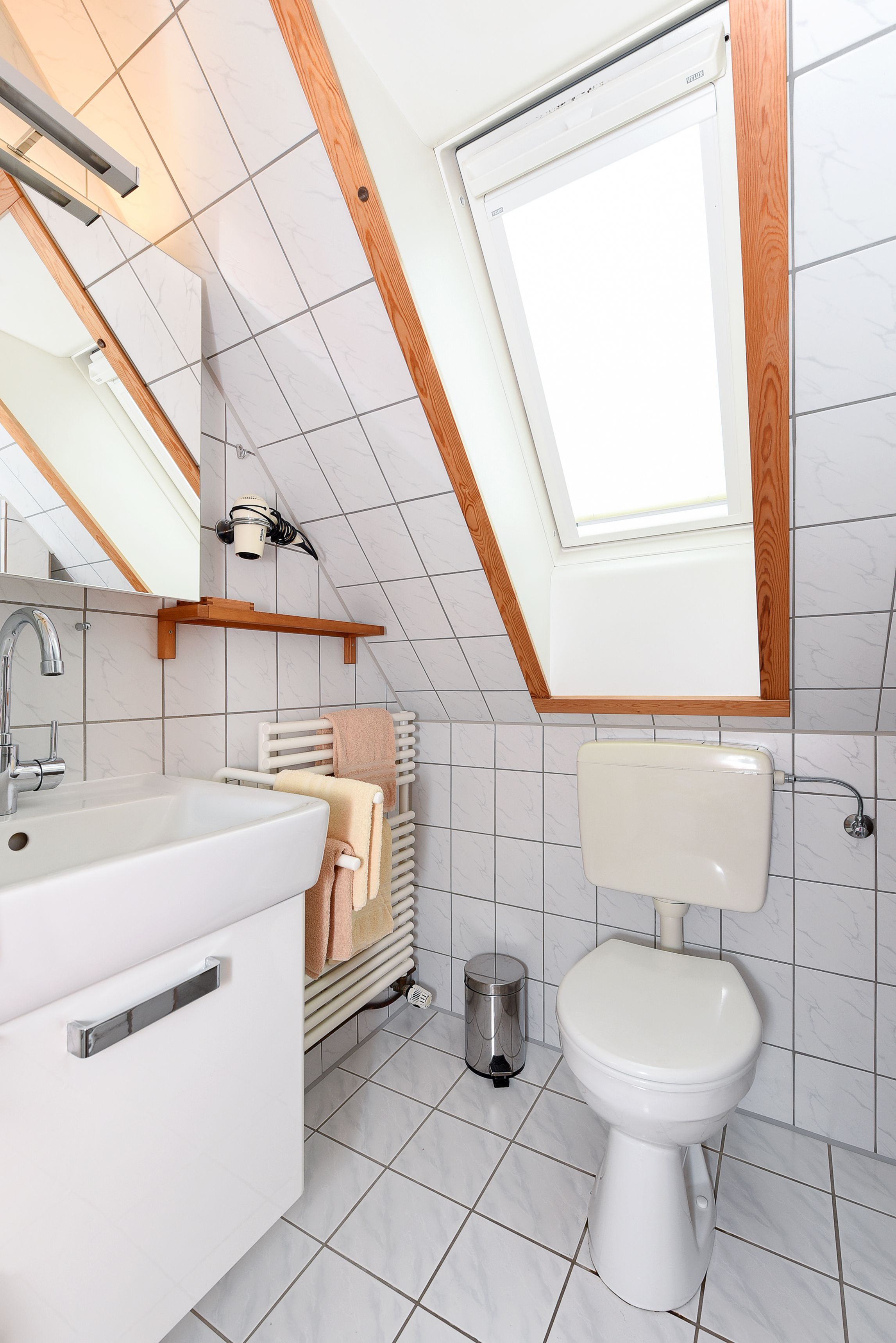 Badezimmer mit Dusche, Waschtisch und WC